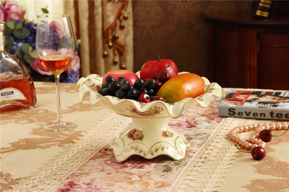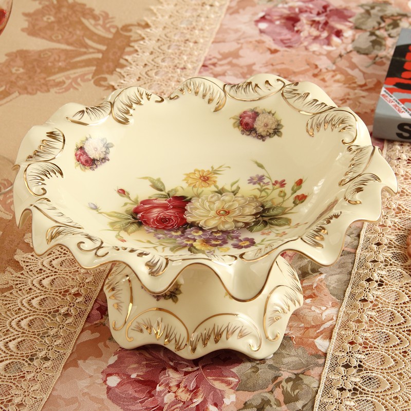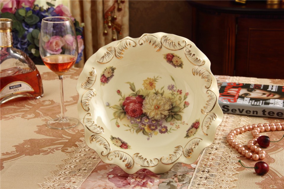 象牙瓷 陶瓷欧式画金大号水果碗