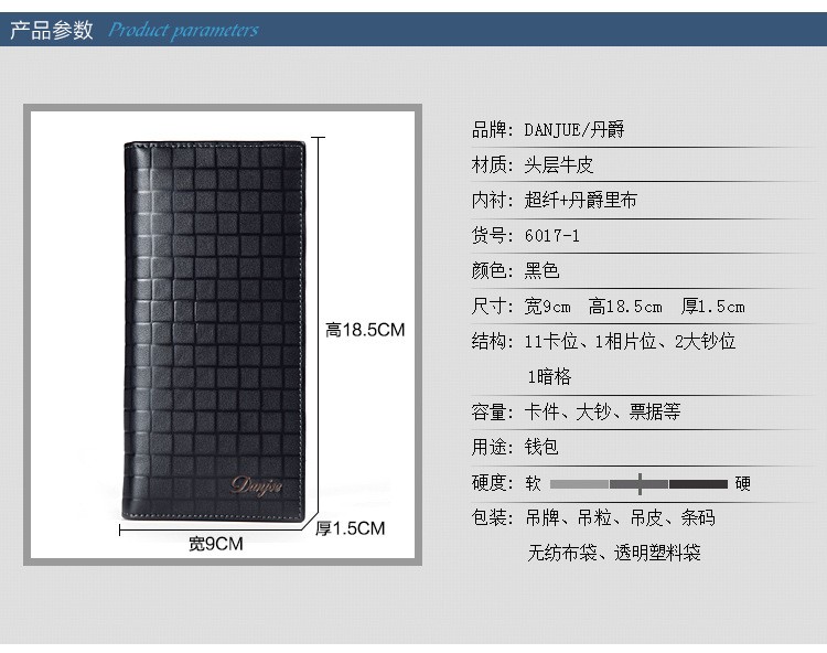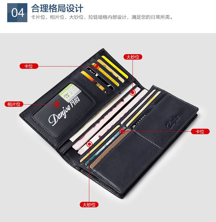 丹爵(DANJUE)2017新款钱包男真皮长款头层牛皮男士钱包钱夹手包6017-1