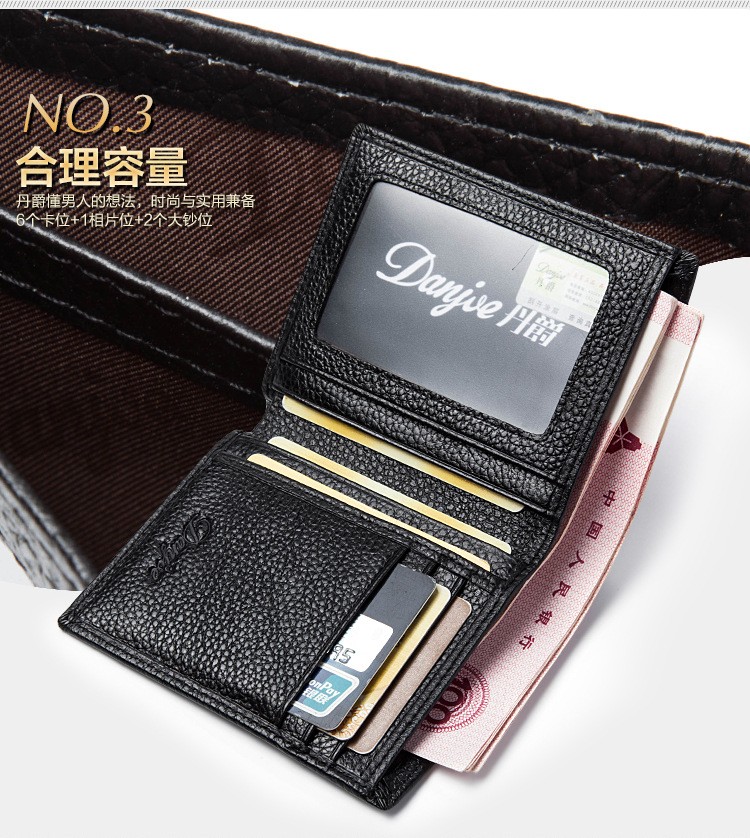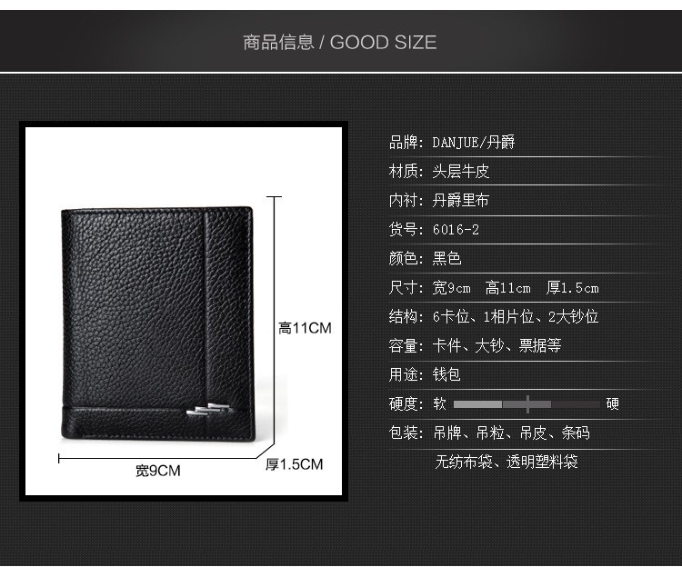 丹爵(DANJUE)男士真皮短款皮夹软牛皮钱夹超薄商务票夹6016-2