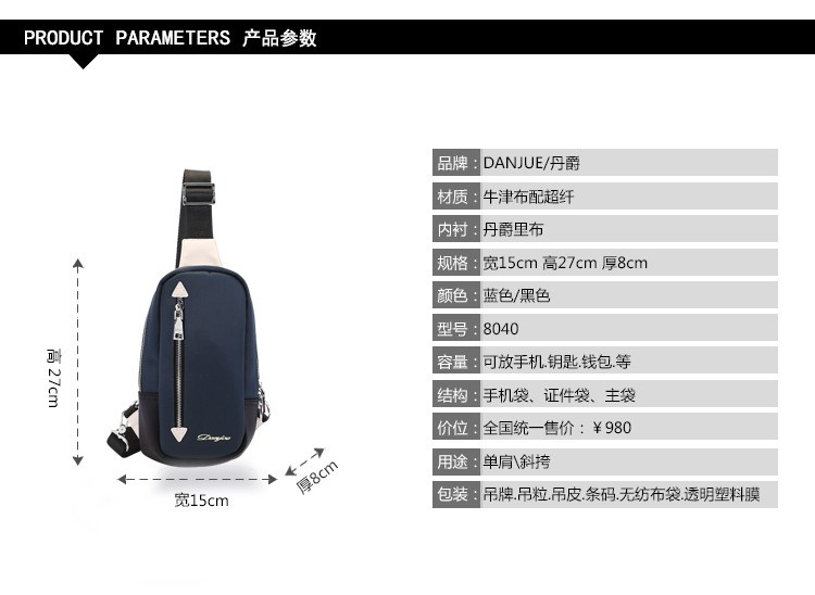 丹爵(DANJUE)男士胸包防水牛津布时尚休闲单肩斜挎包男式包潮流男款胸包 8040