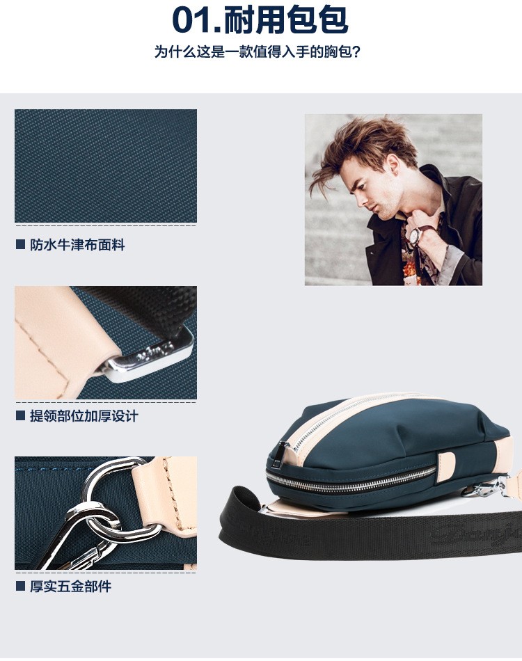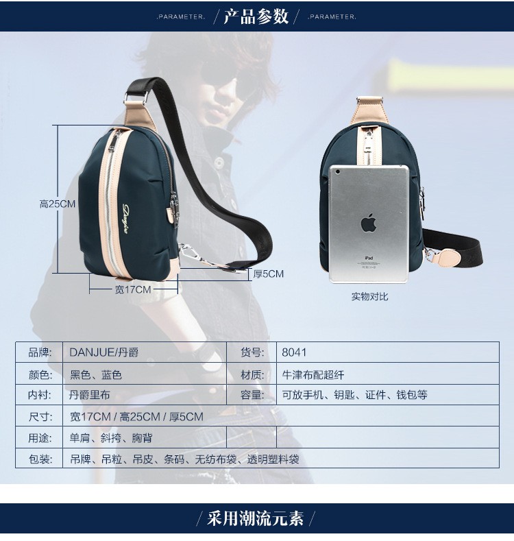 丹爵(DANJUE)男士胸包防水牛津布时尚休闲单肩斜挎包男式小包潮流男款胸包 8041
