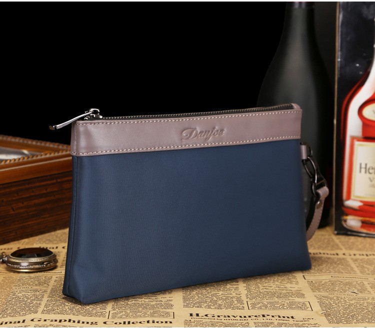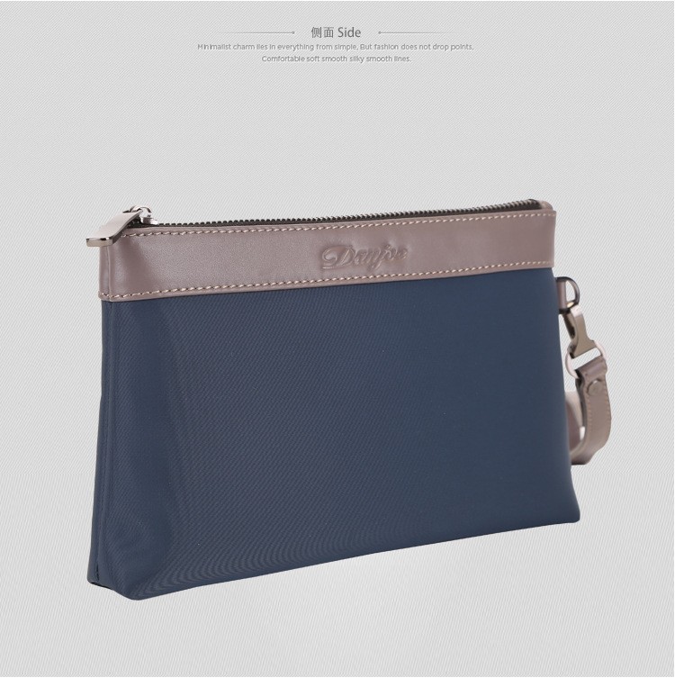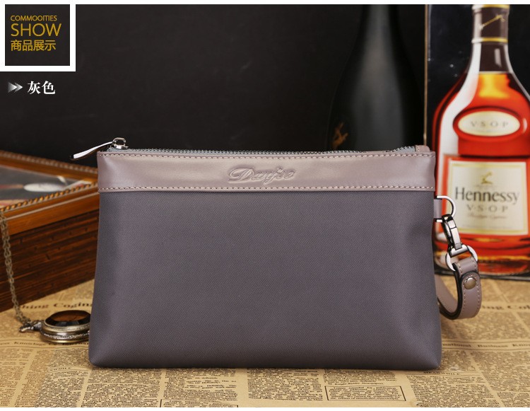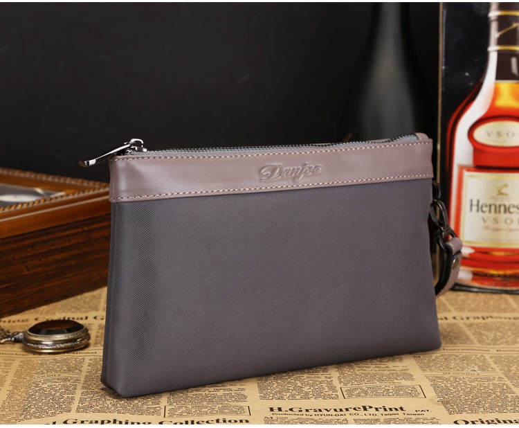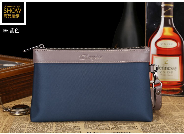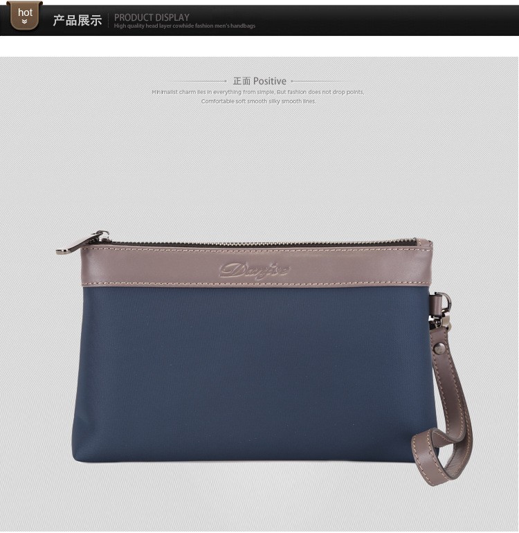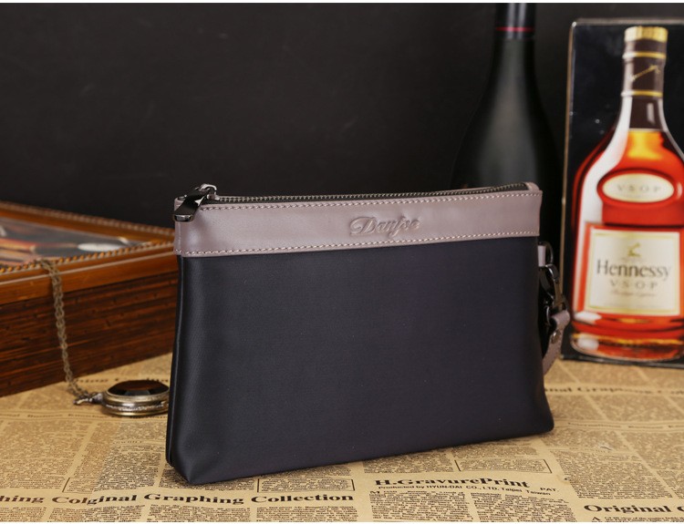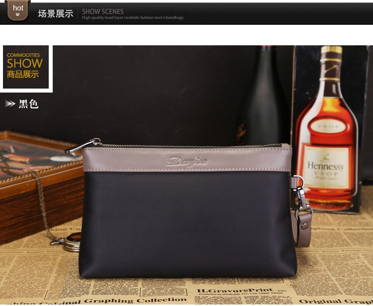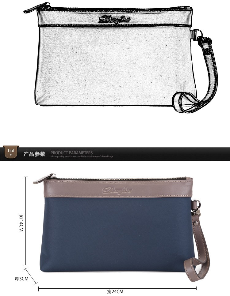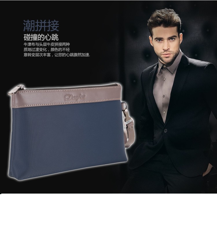丹爵(DANJUE)头层牛皮配牛津布手抓包时尚休闲男士手拿包多功能长款钱包D8809