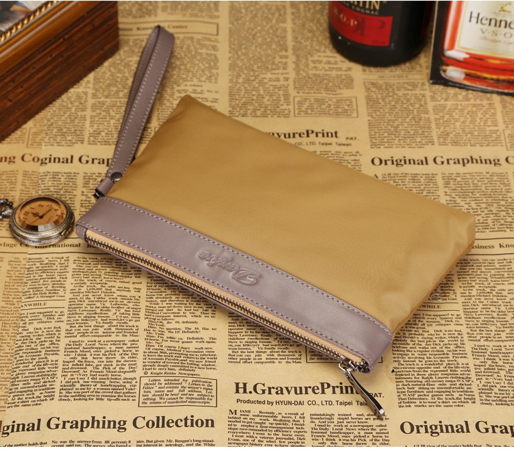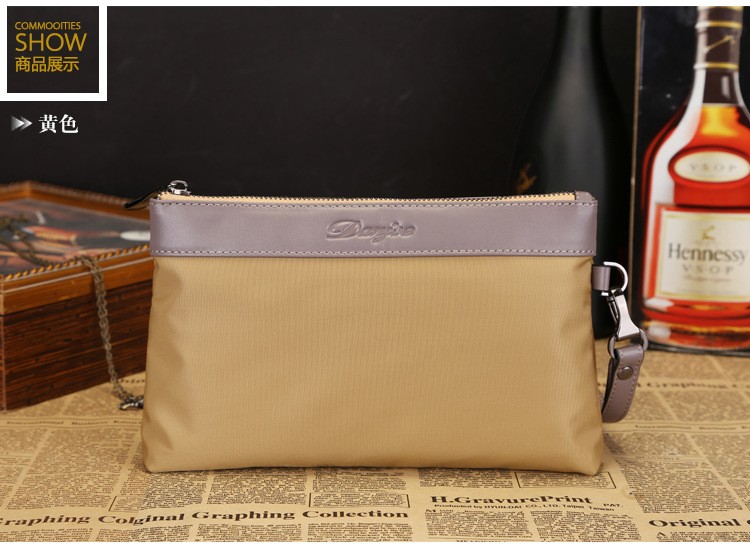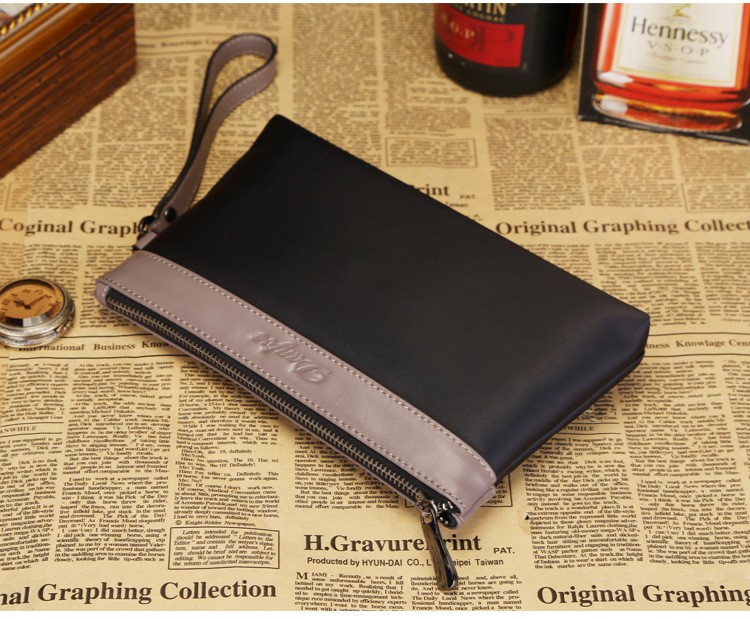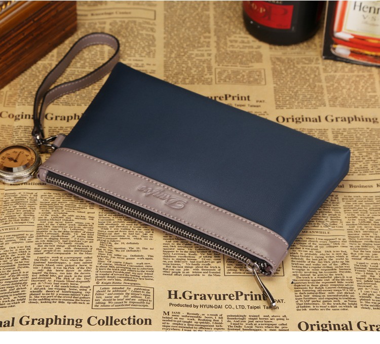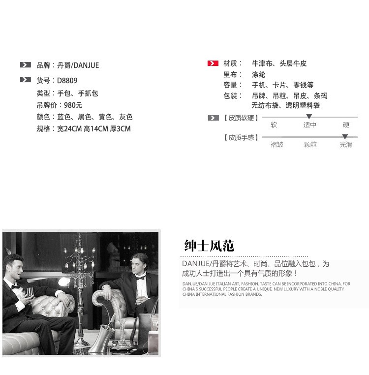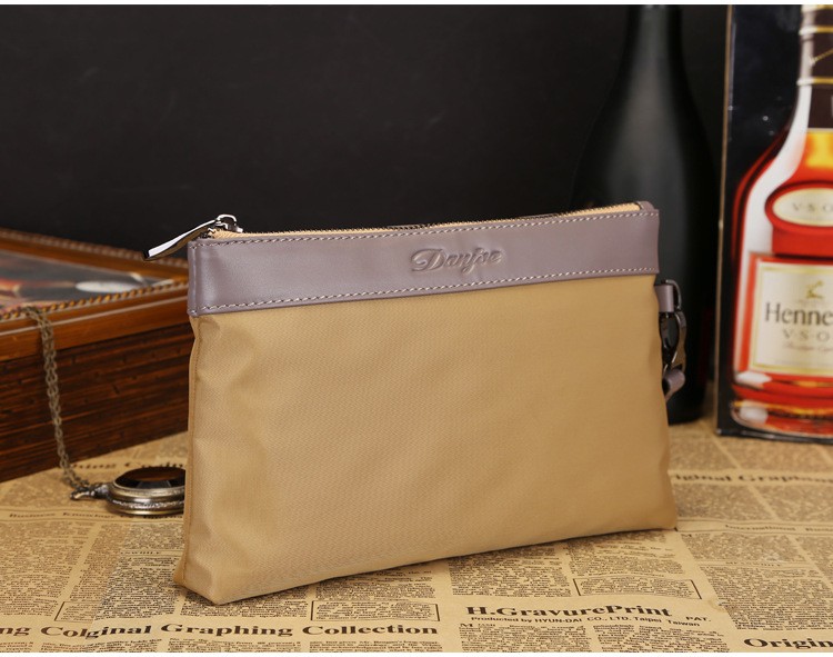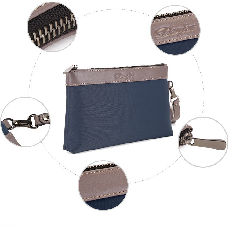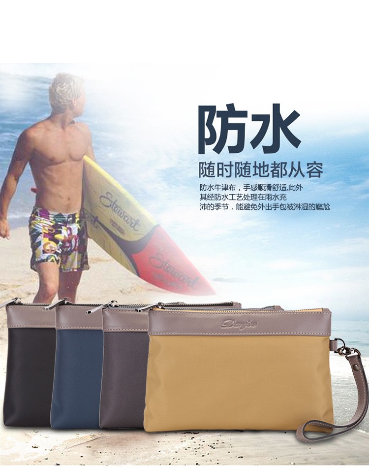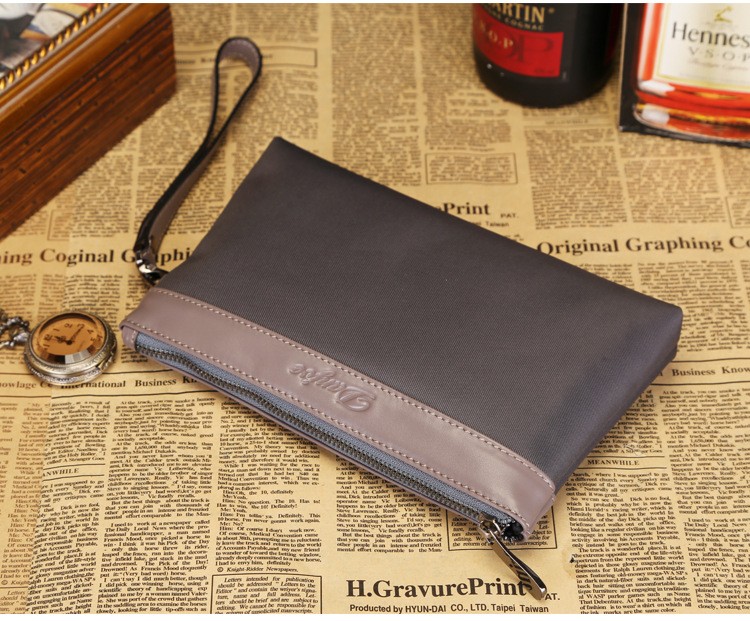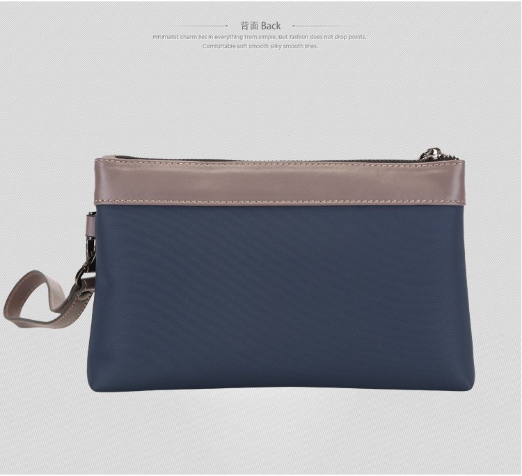 丹爵(DANJUE)头层牛皮配牛津布手抓包时尚休闲男士手拿包多功能长款钱包D8809