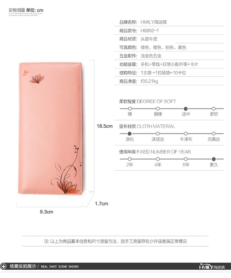 海谜璃(HMILY)女士钱包新款真皮钱包女长款牛皮钱夹韩版女式皮夹