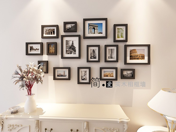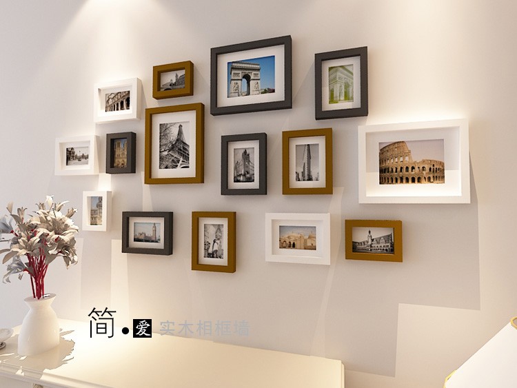 实木相框墙 照片 相片像片 挂墙 客厅 装饰墙 创意 简约 现代