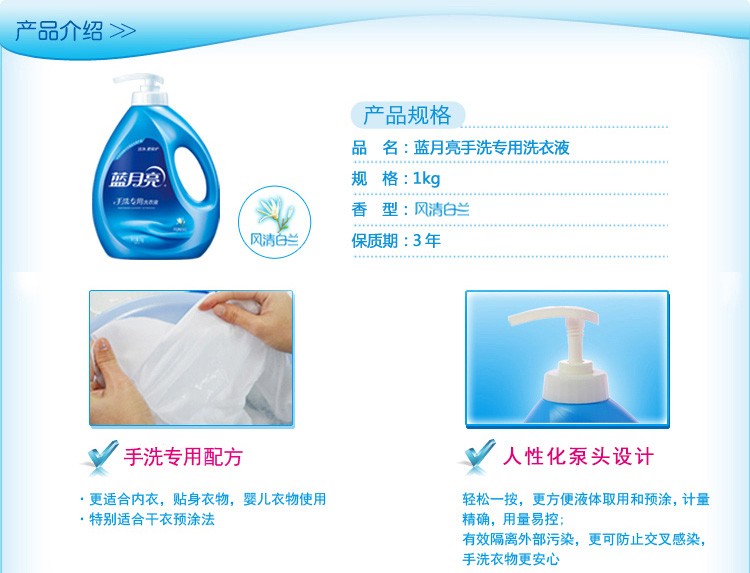 蓝月亮洗衣液手洗专用风清白兰香1kg泵头装手洗方便中性配方温和