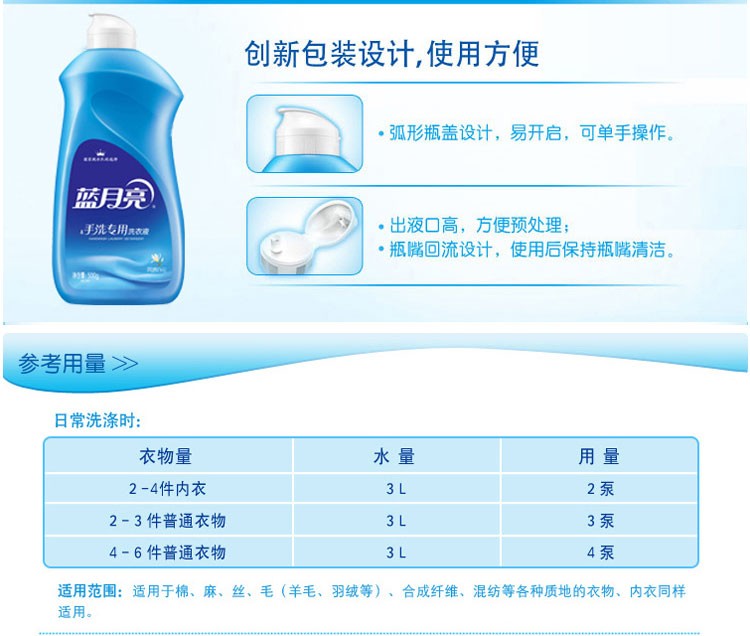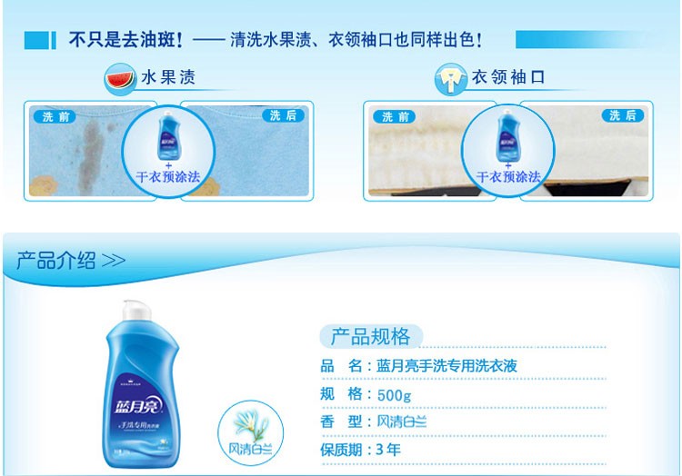 蓝月亮洗衣液手洗专用风清白兰香500g 翻盖装清洁衣领、袖口油斑
