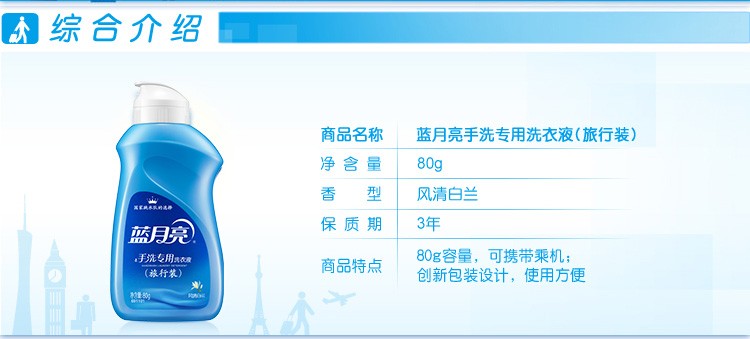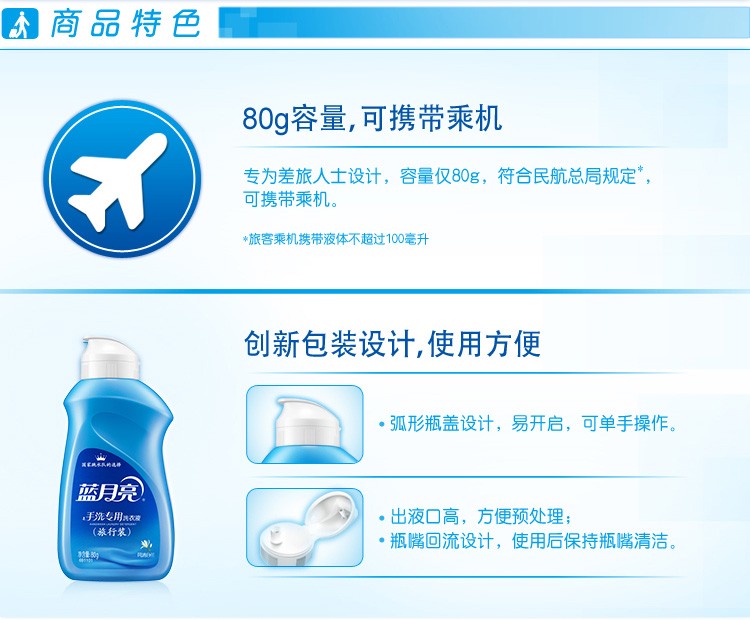 蓝月亮洗衣液80g旅行装风清白兰香翻盖手洗