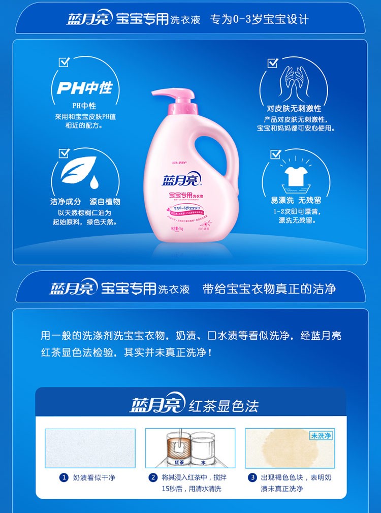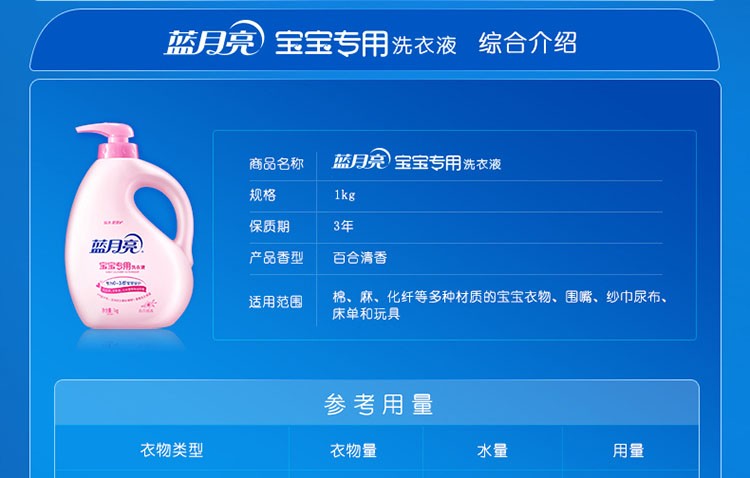 蓝月亮宝宝洗衣液1kg瓶装婴儿衣物专用百合清香温和配方护肤