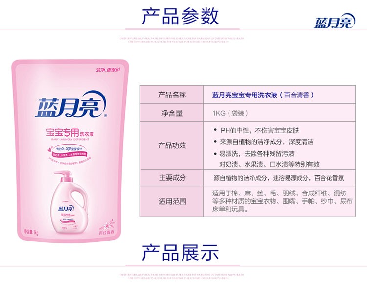 蓝月亮宝宝洗衣液1kg袋装婴儿衣物专用百合清香温和配方护肤