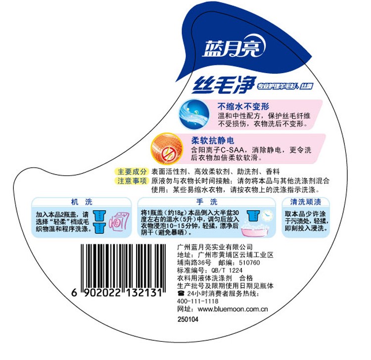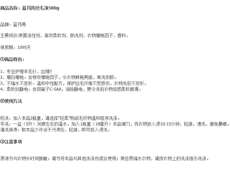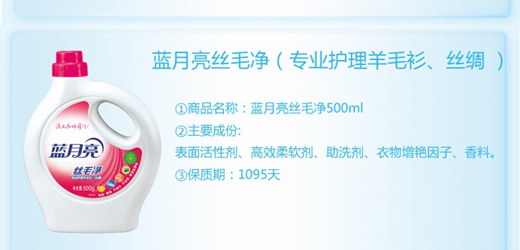 蓝月亮丝毛净500g瓶装柔软抗静电清洗不缩水不变形护理羊毛衫丝绸