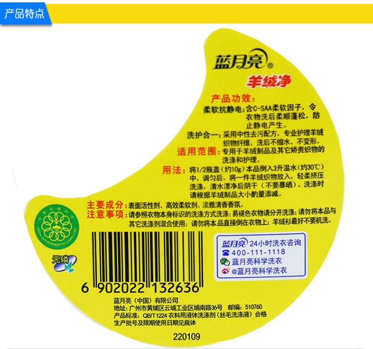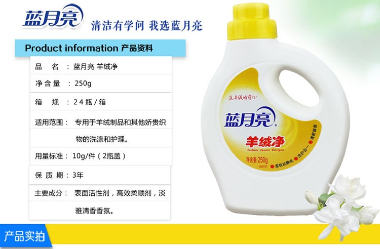 蓝月亮防蛀羊绒净250g瓶装防虫蛀、柔顺羊绒毛、抗静电、柔软透气