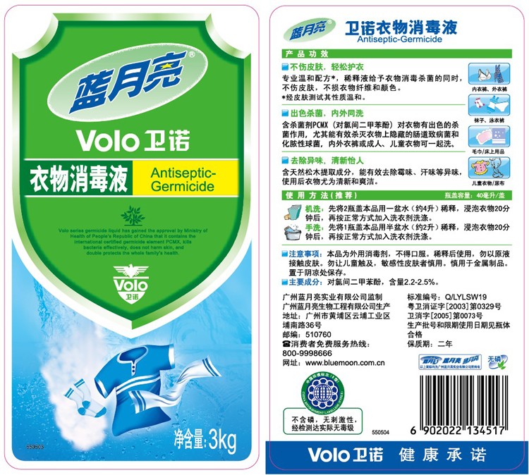 蓝月亮3kg卫诺衣物消毒液杀菌消毒除异味、护衣有效杀灭大肠杆菌
