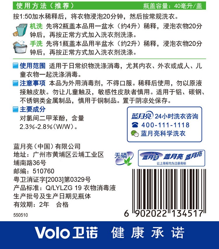 蓝月亮1kg卫诺衣物消毒液杀菌消毒除异味、护衣有效杀灭大肠杆菌