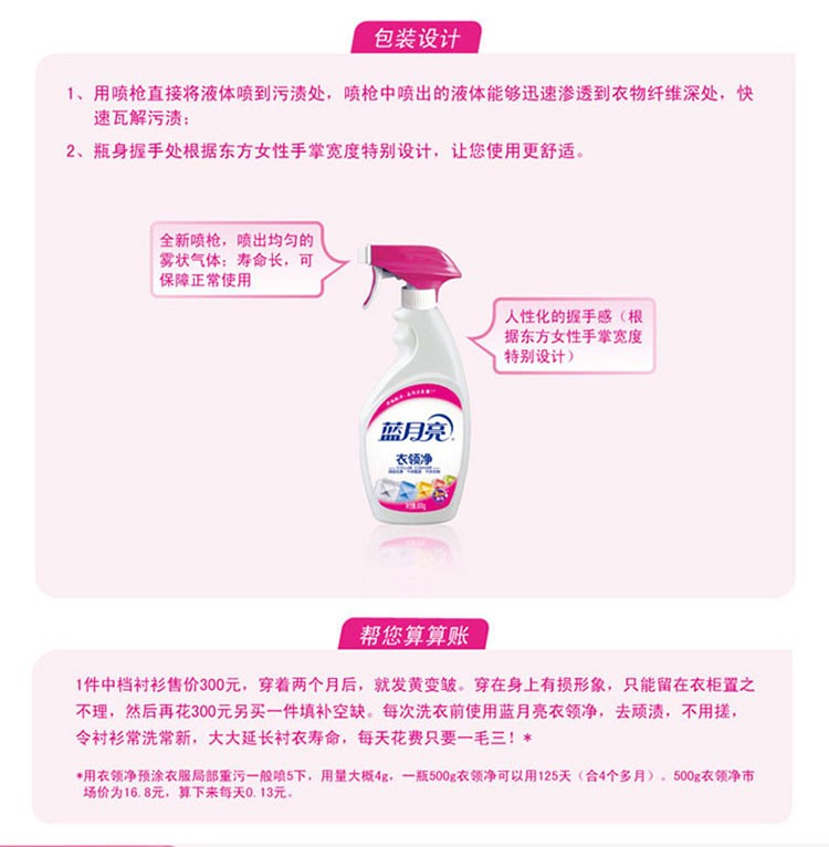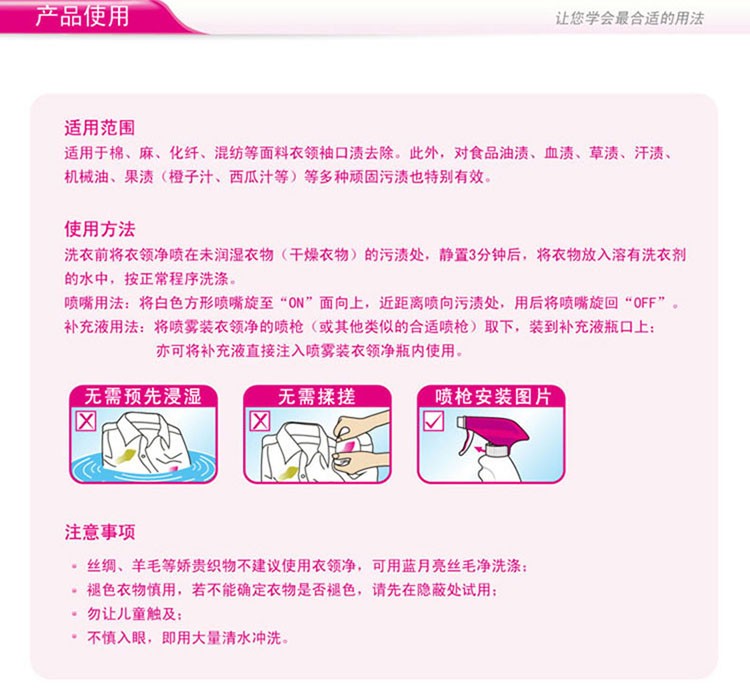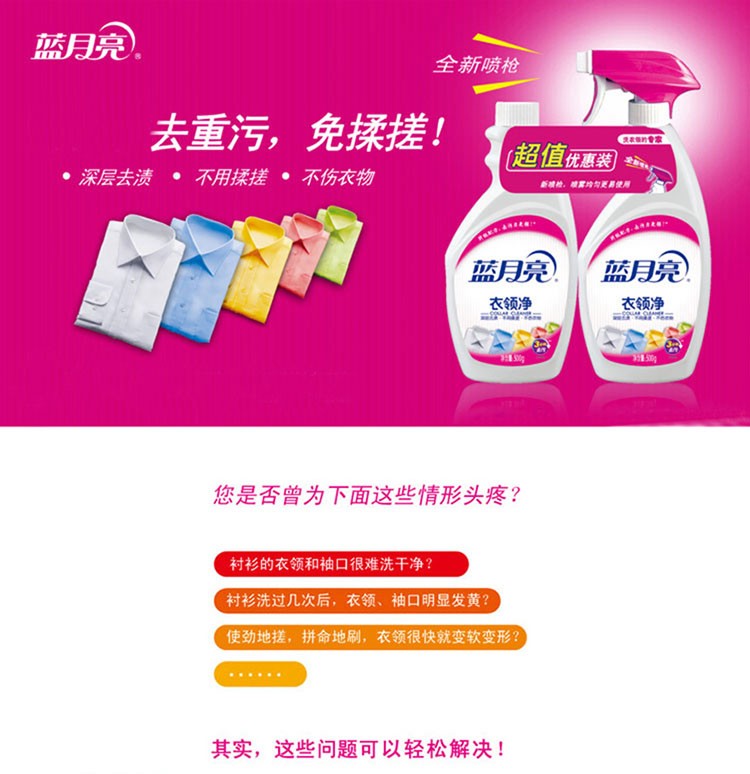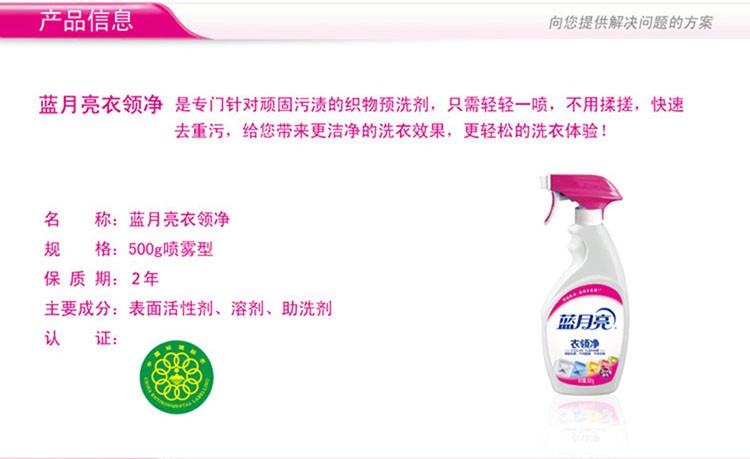 蓝月亮衣领净强力去污500g喷雾型除衣领袖口渍深层去污渍不伤衣物