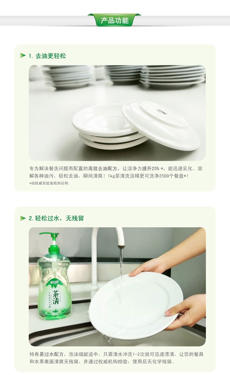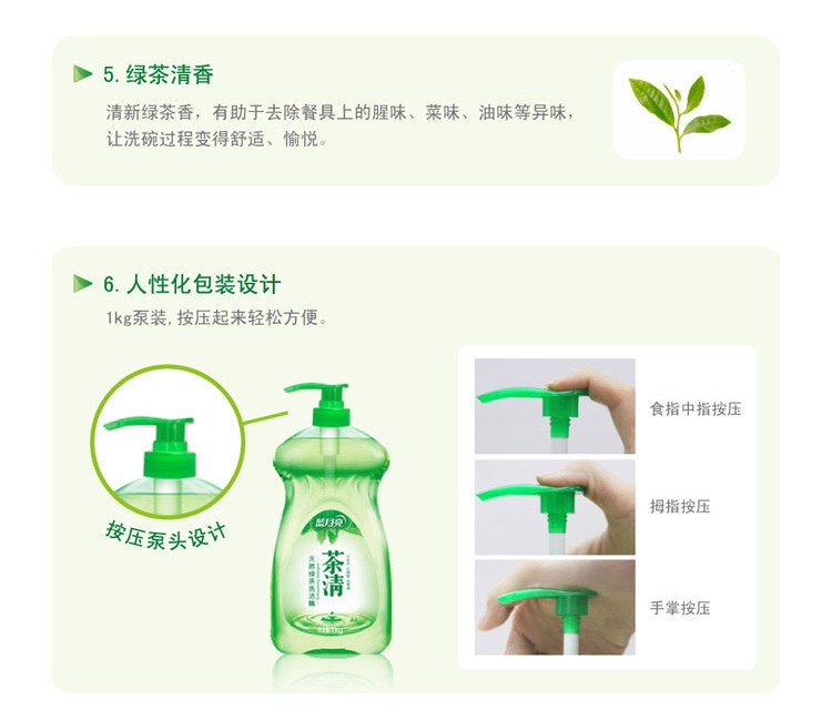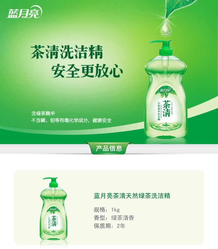 蓝月亮茶清洗洁精1kg瓶装去油去腥可洗果蔬泡沫适中不伤手
