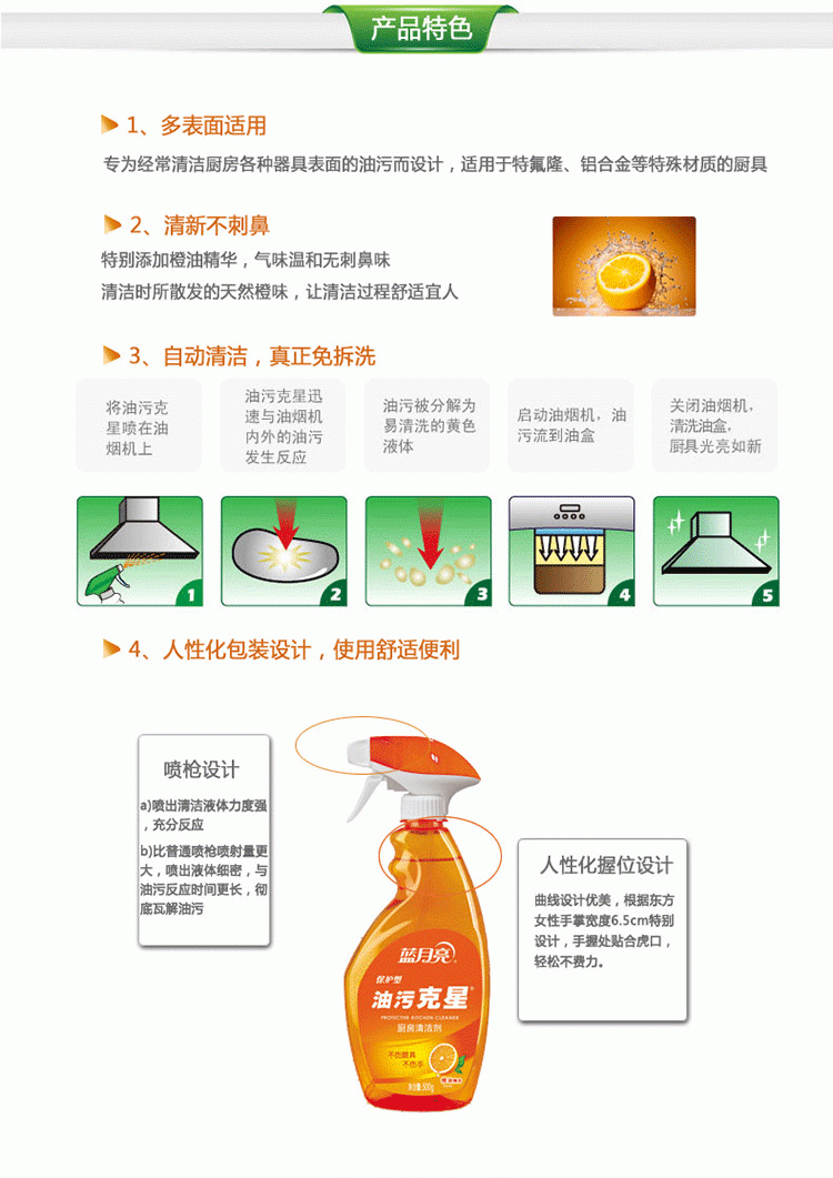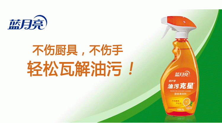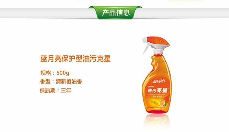 蓝月亮香橙保护型油污克星500g瓦解重油污、保护型、免拆洗