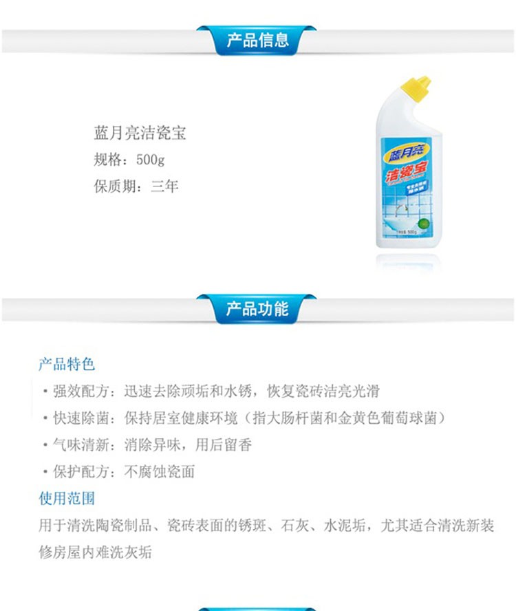 蓝月亮洁瓷宝500g 地板瓷砖清洁速除菌剂洁瓷剂清新保护配方