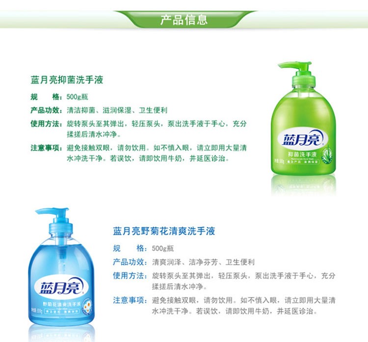 蓝月亮洗手液500g瓶装芦荟+野菊花芦荟滋润、野菊花清爽润泽