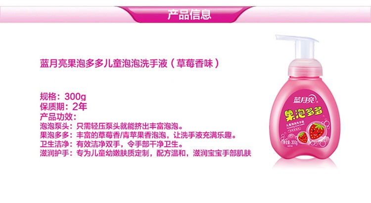 蓝月亮儿童泡泡洗手液草莓味 300g/瓶装 果泡多多