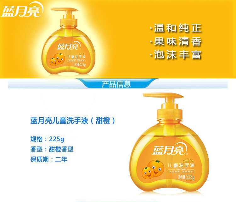 蓝月亮甜橙儿童洗手液225g呵护儿童细嫩双手、清新果香、容易冲水