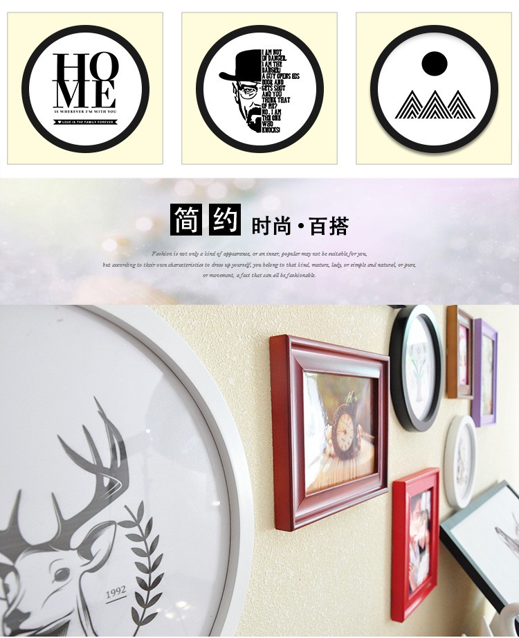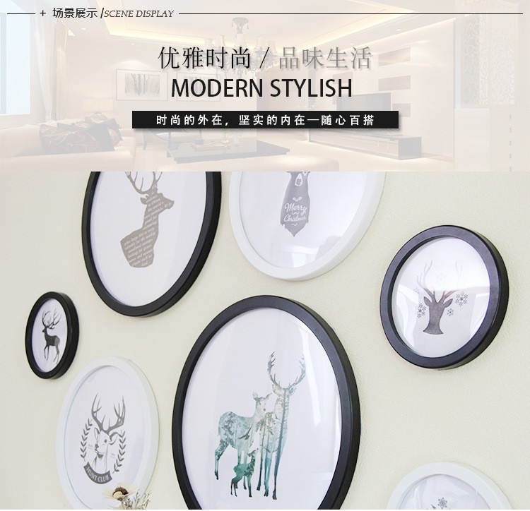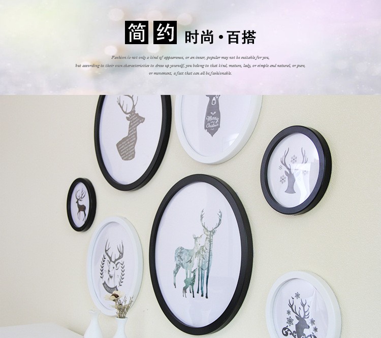 正圆相框窗花背景墙 客厅卧室创意照片墙组合 挂墙圆形装饰画