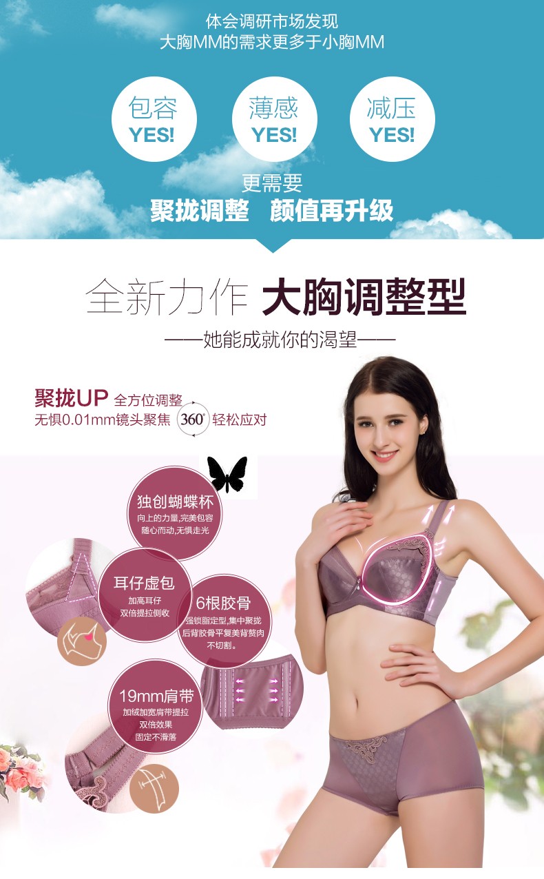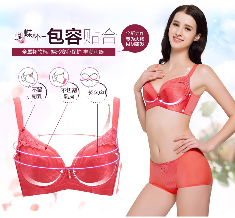 体会内衣BQ0991 大码光面无痕全罩杯胸罩性感网纱聚拢调整型大胸文胸