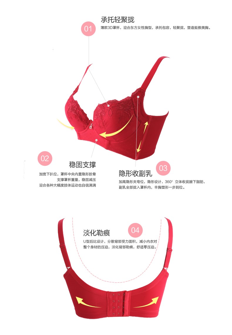 体会内衣BQ0681 薄模杯款聚拢收副乳调整型胸罩性感刺绣蕾丝文胸