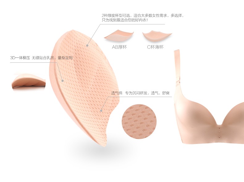 体会内衣BSK181 厚薄款光面无痕无钢圈性感聚拢调整型文胸