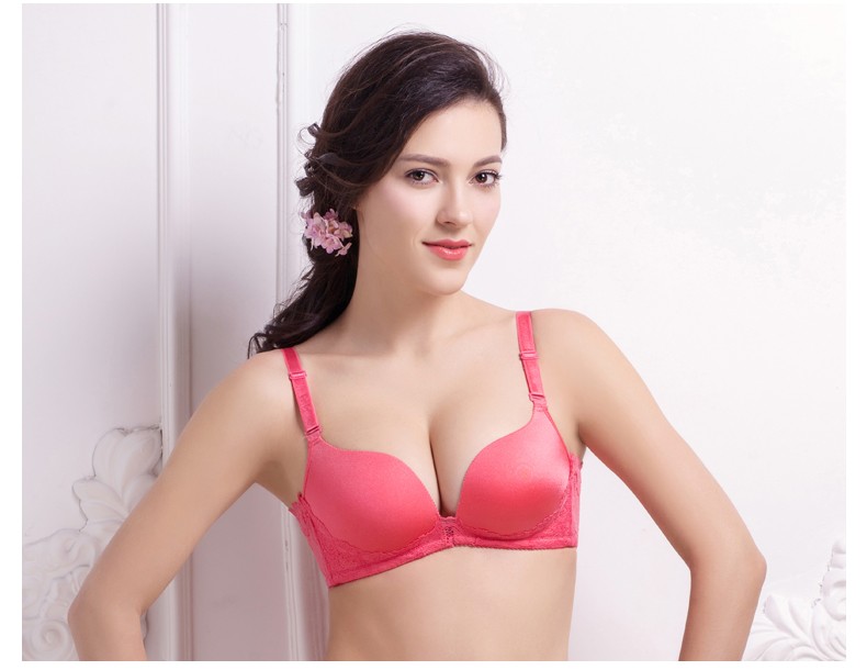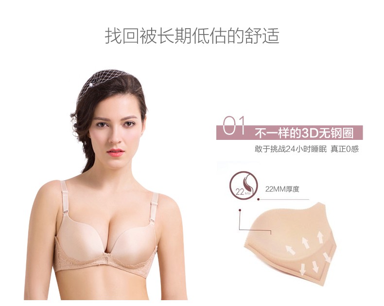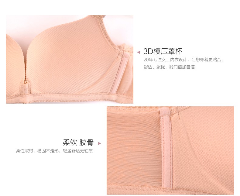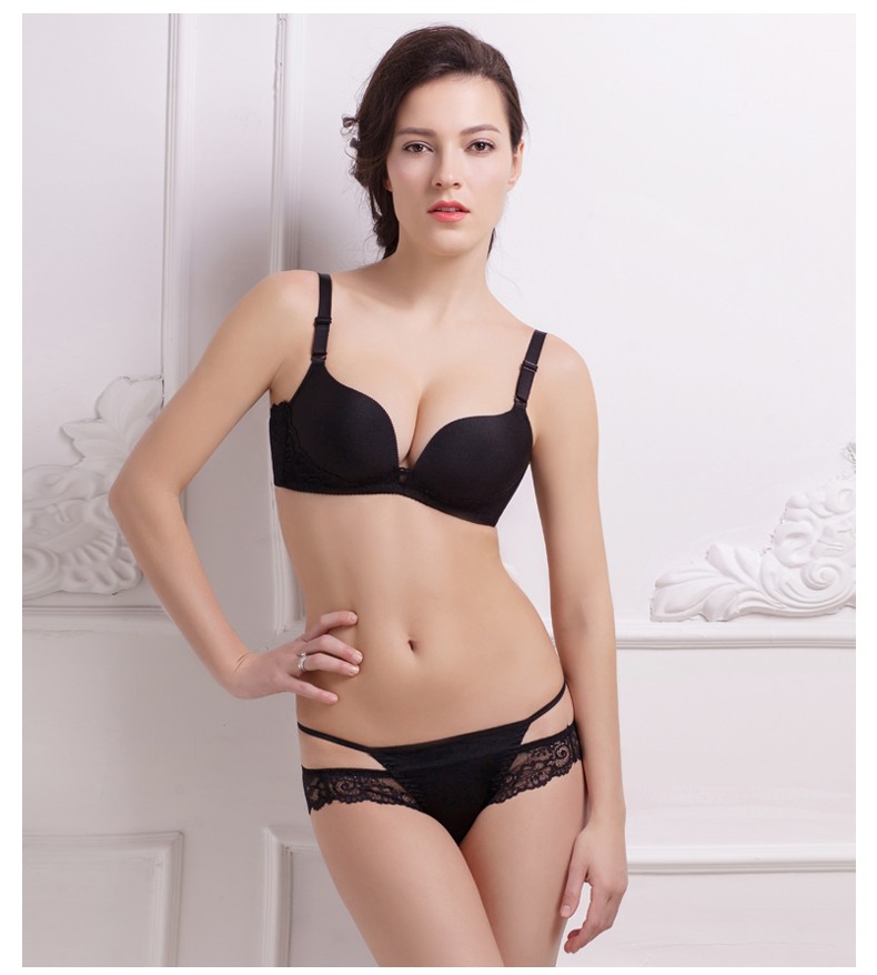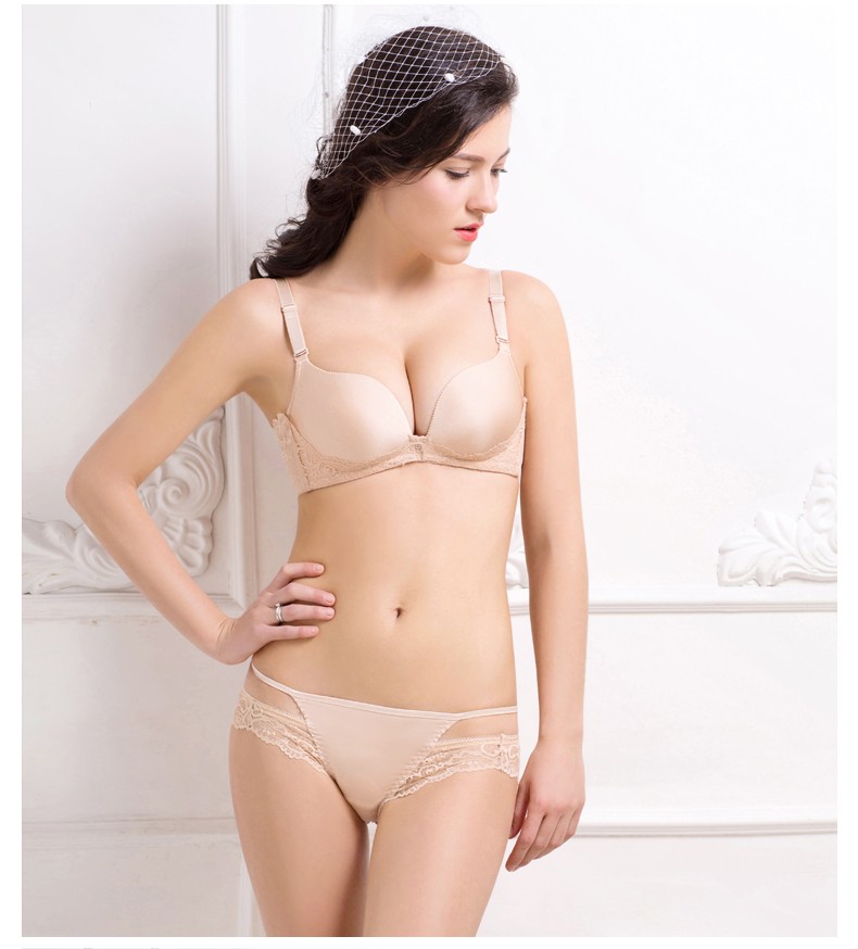 体会内衣BSK175-1 性感蕾丝无钢圈厚款超聚拢简约光面无痕美背文胸内裤套装
