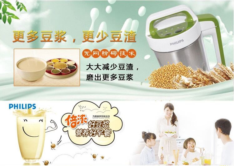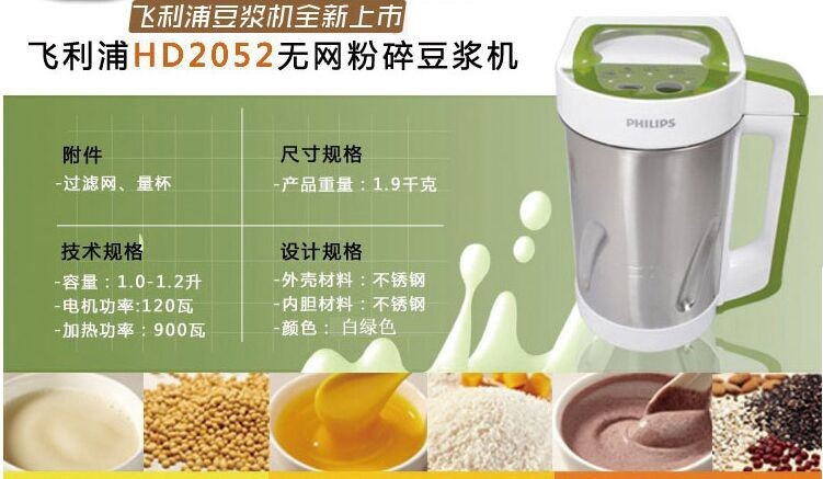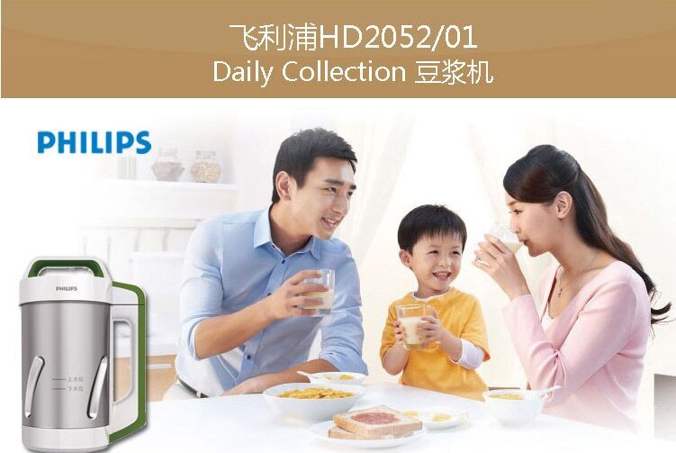 飞利浦(PHILIPS)HD2052/03 豆浆机100%全部使用食品级润滑油 无网粉碎技术 大大减少豆渣 磨出更多豆浆