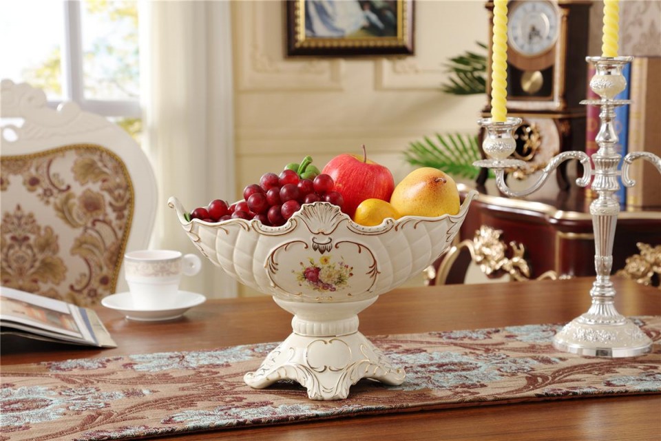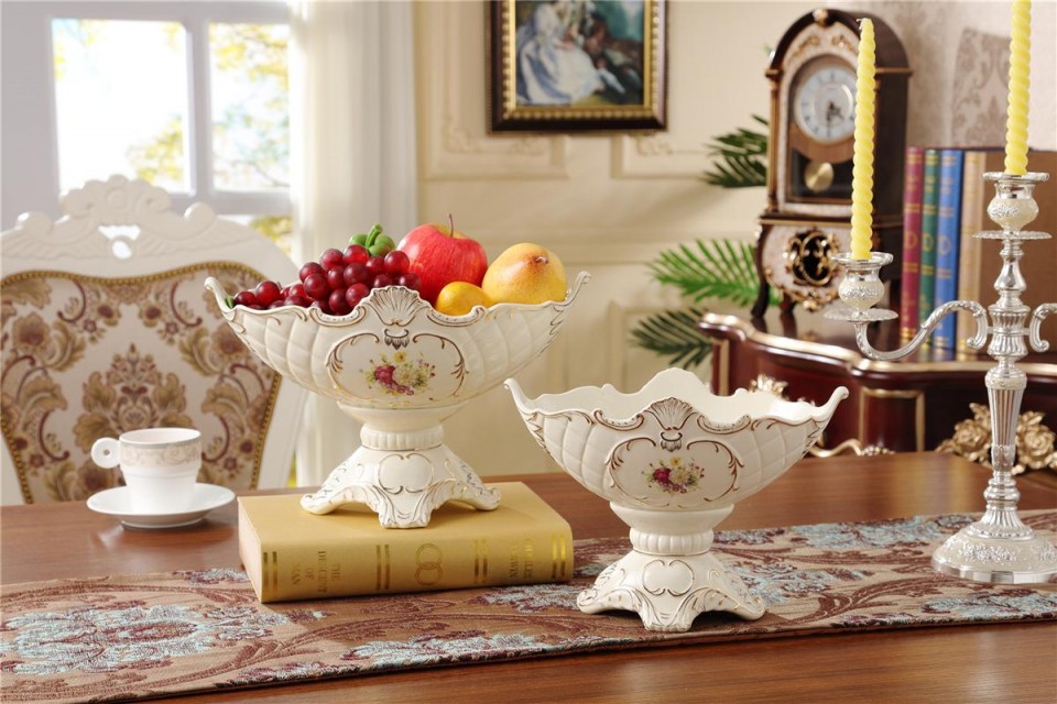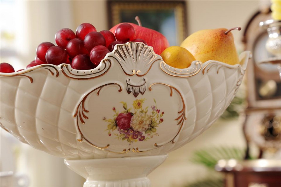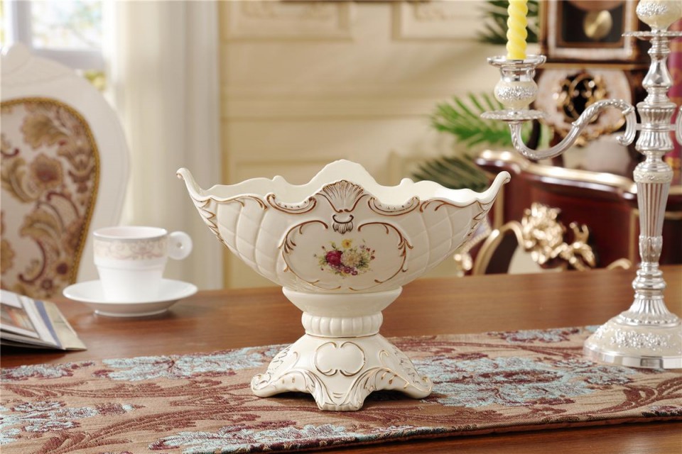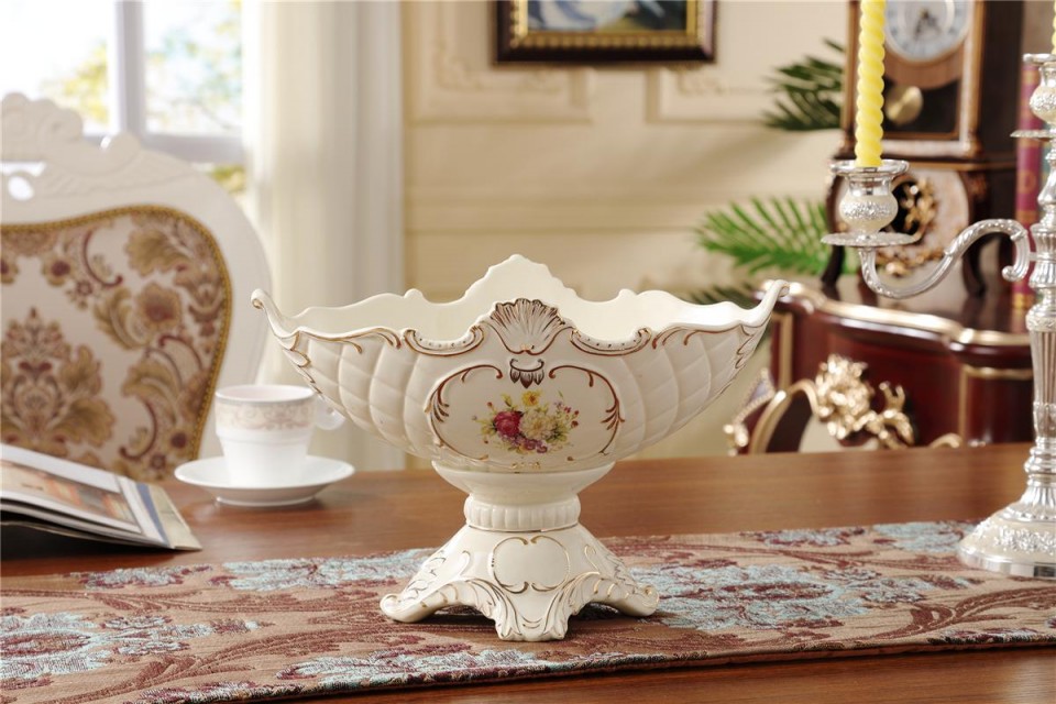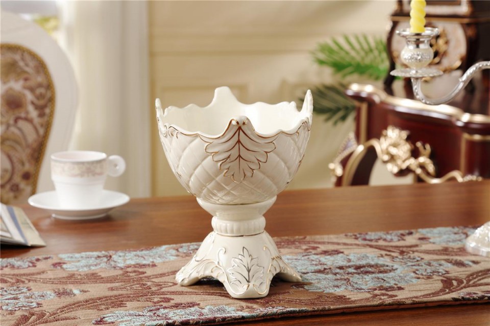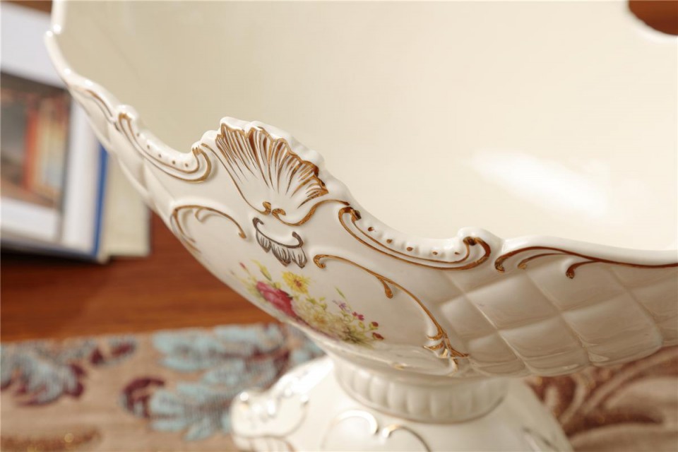 欧式奢华象牙瓷四脚水果盘高档陶瓷