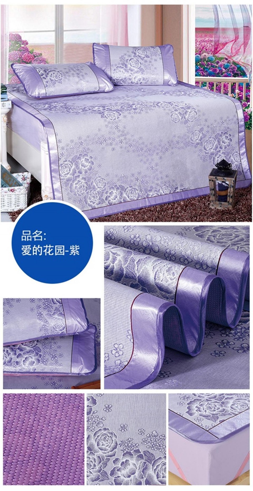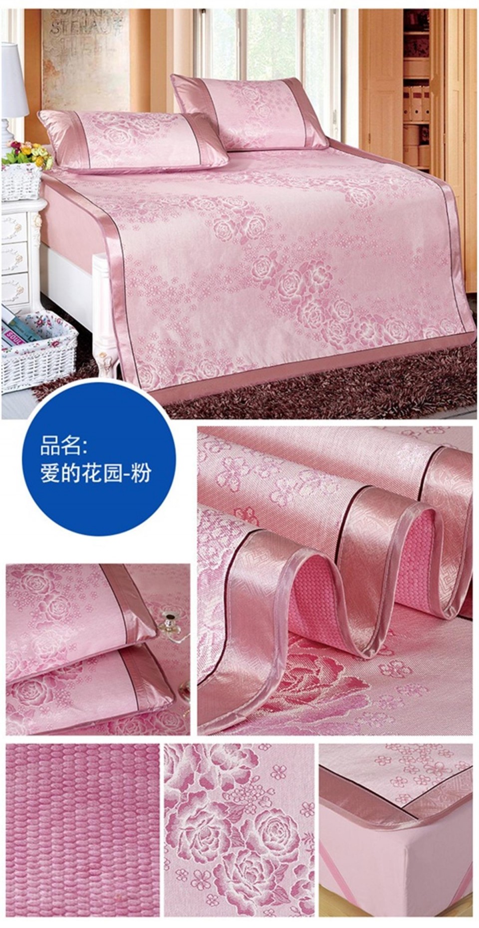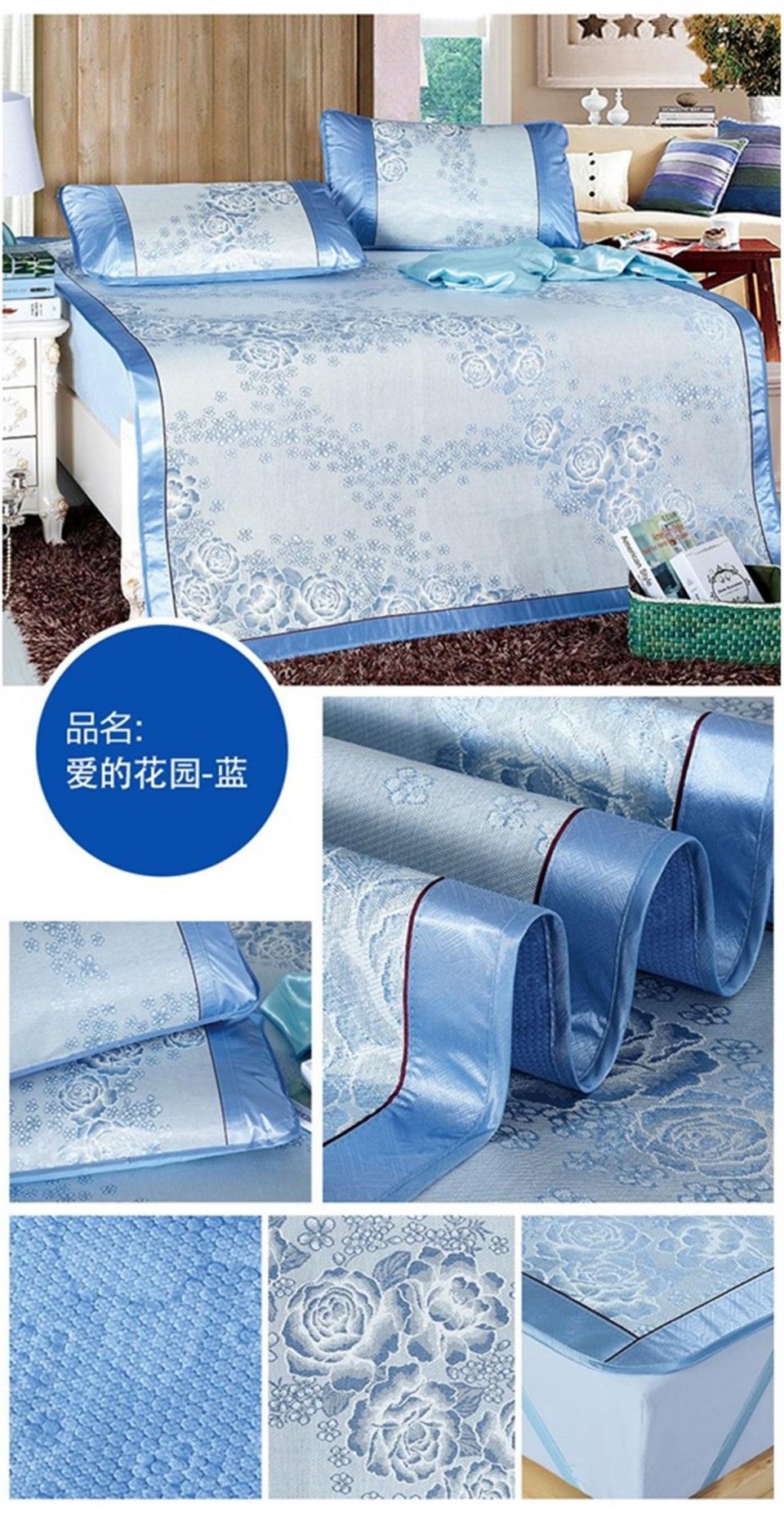 2017新款凉席冰丝席三件套防滑底提花套件 爱的花园