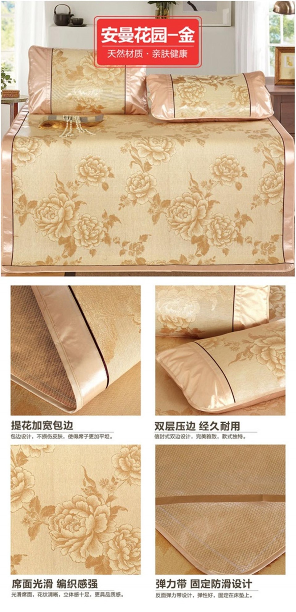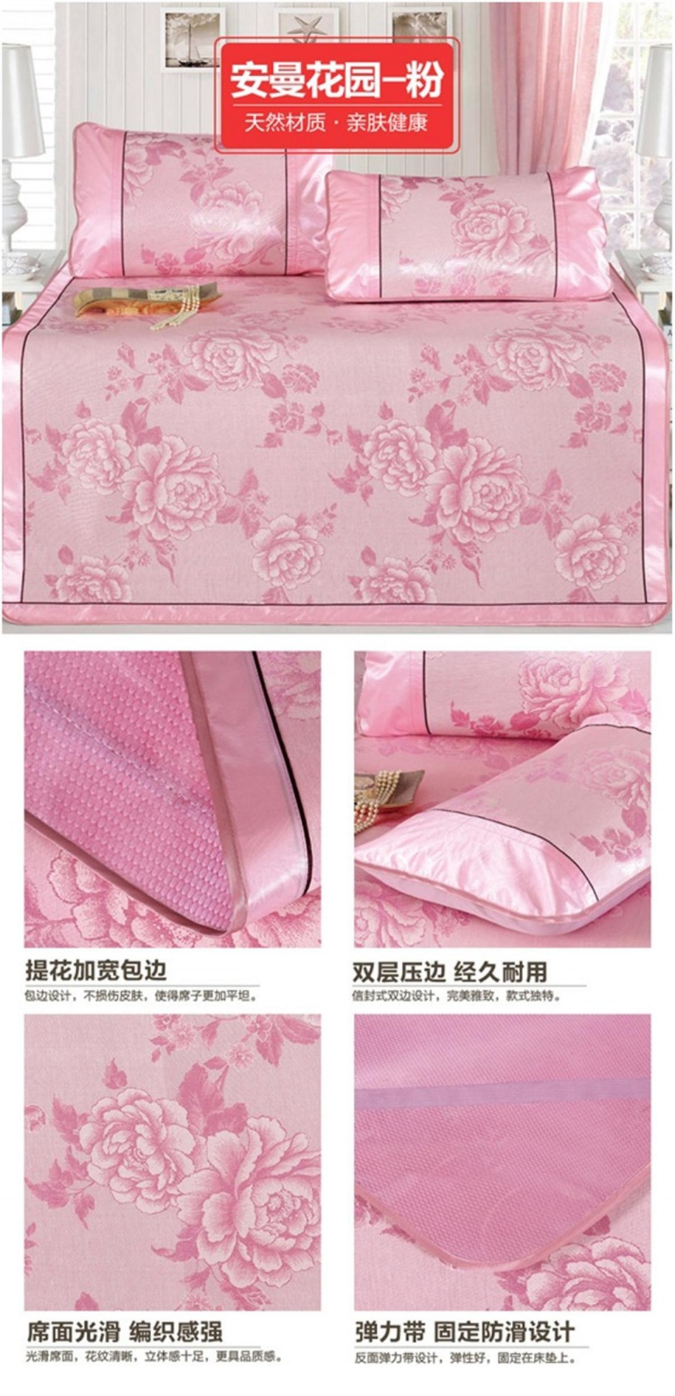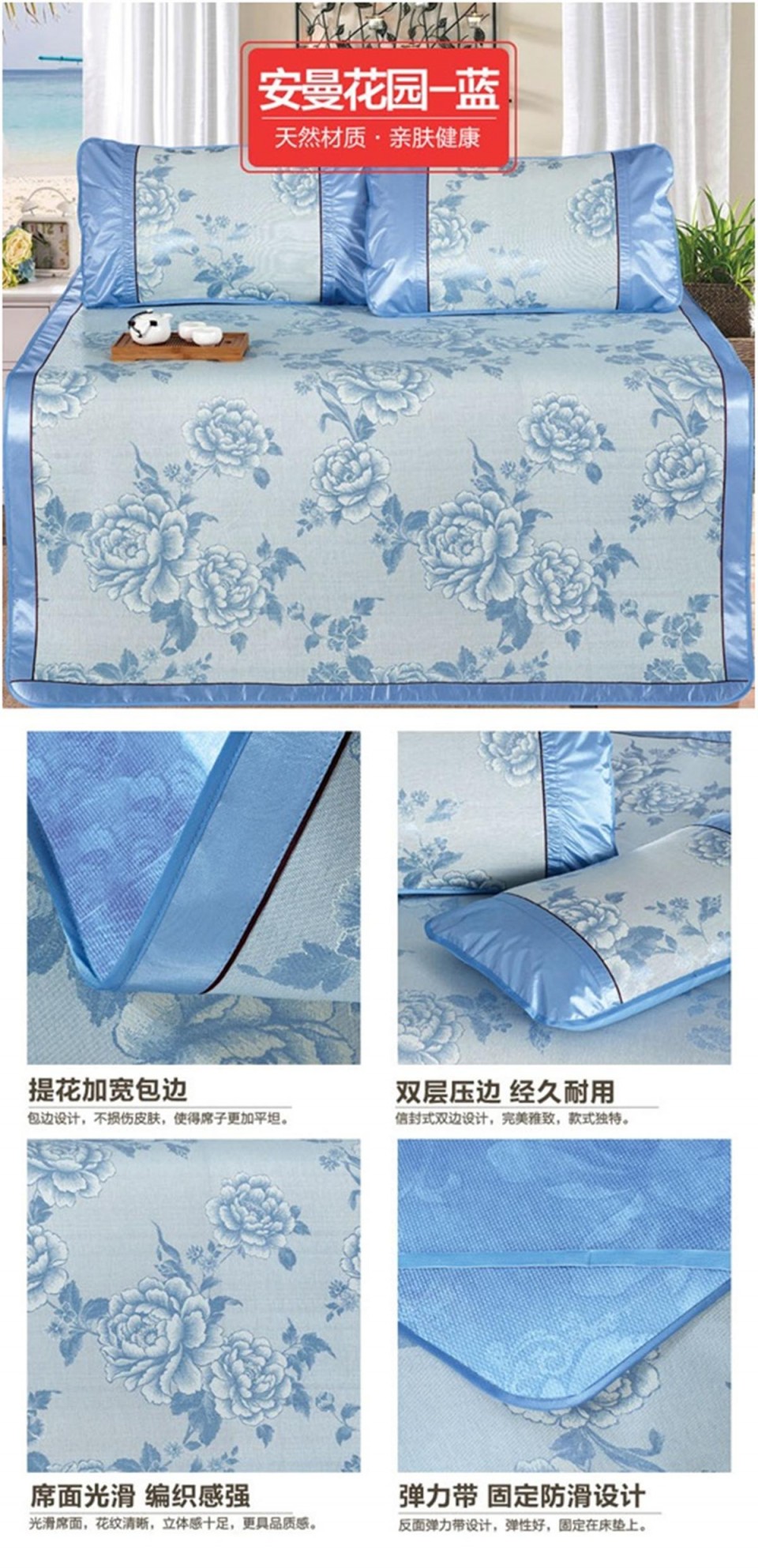 冰丝席印花三件套 双人凉席 安曼花园