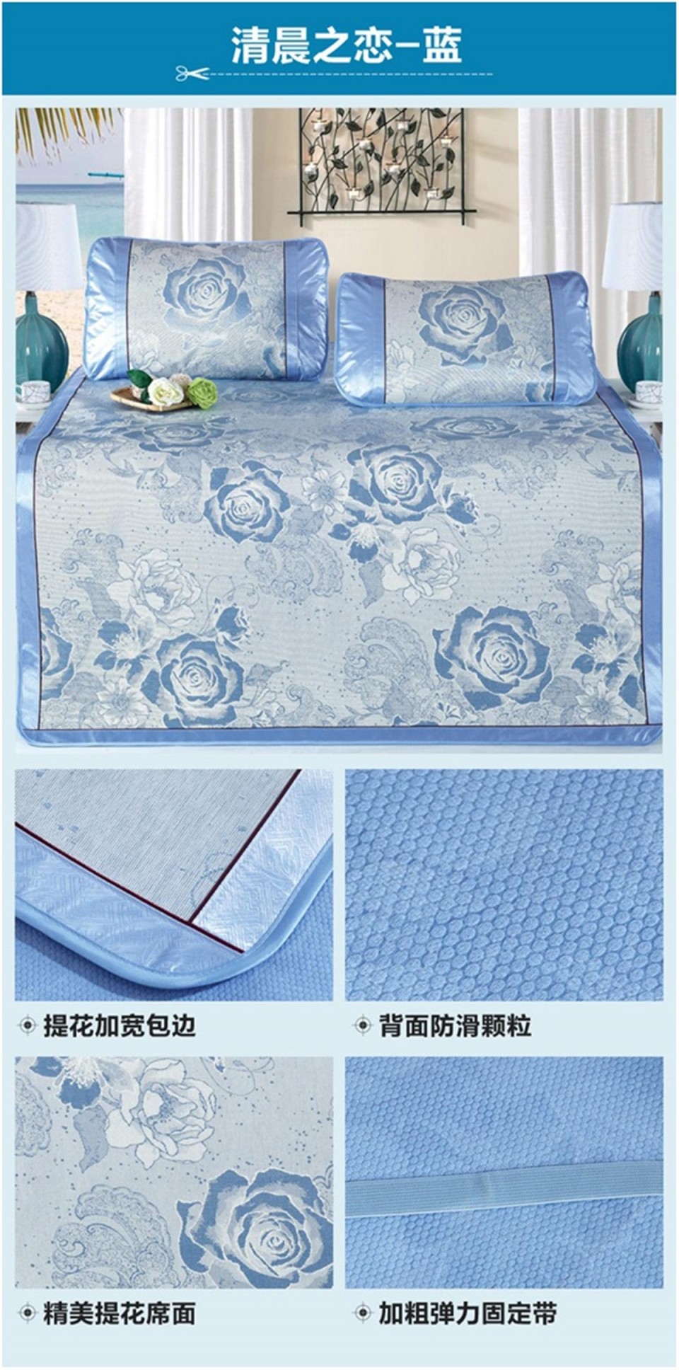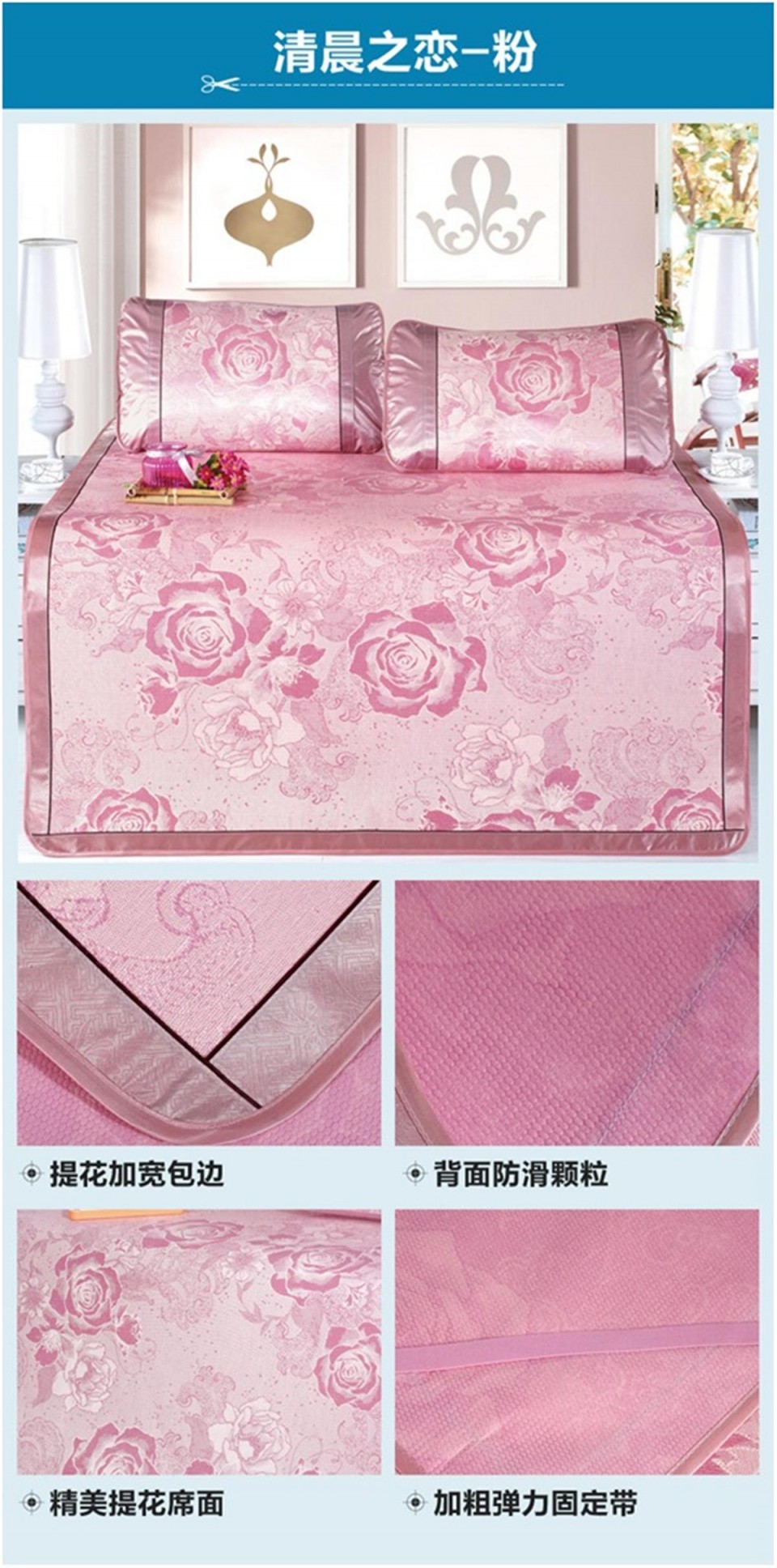 冰丝席印花三件套 双人凉席 清晨之恋
