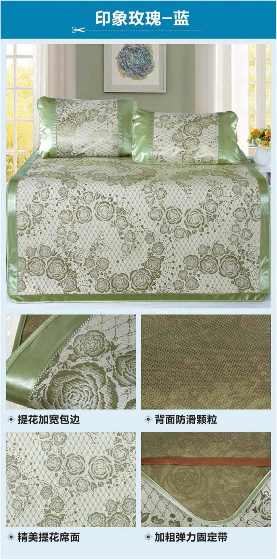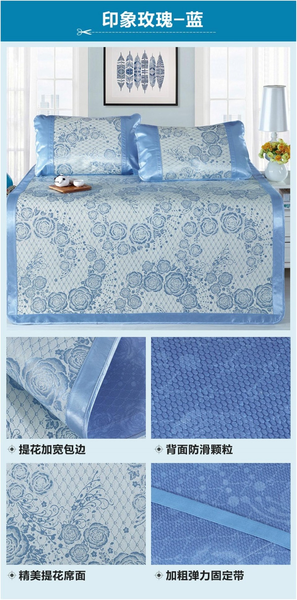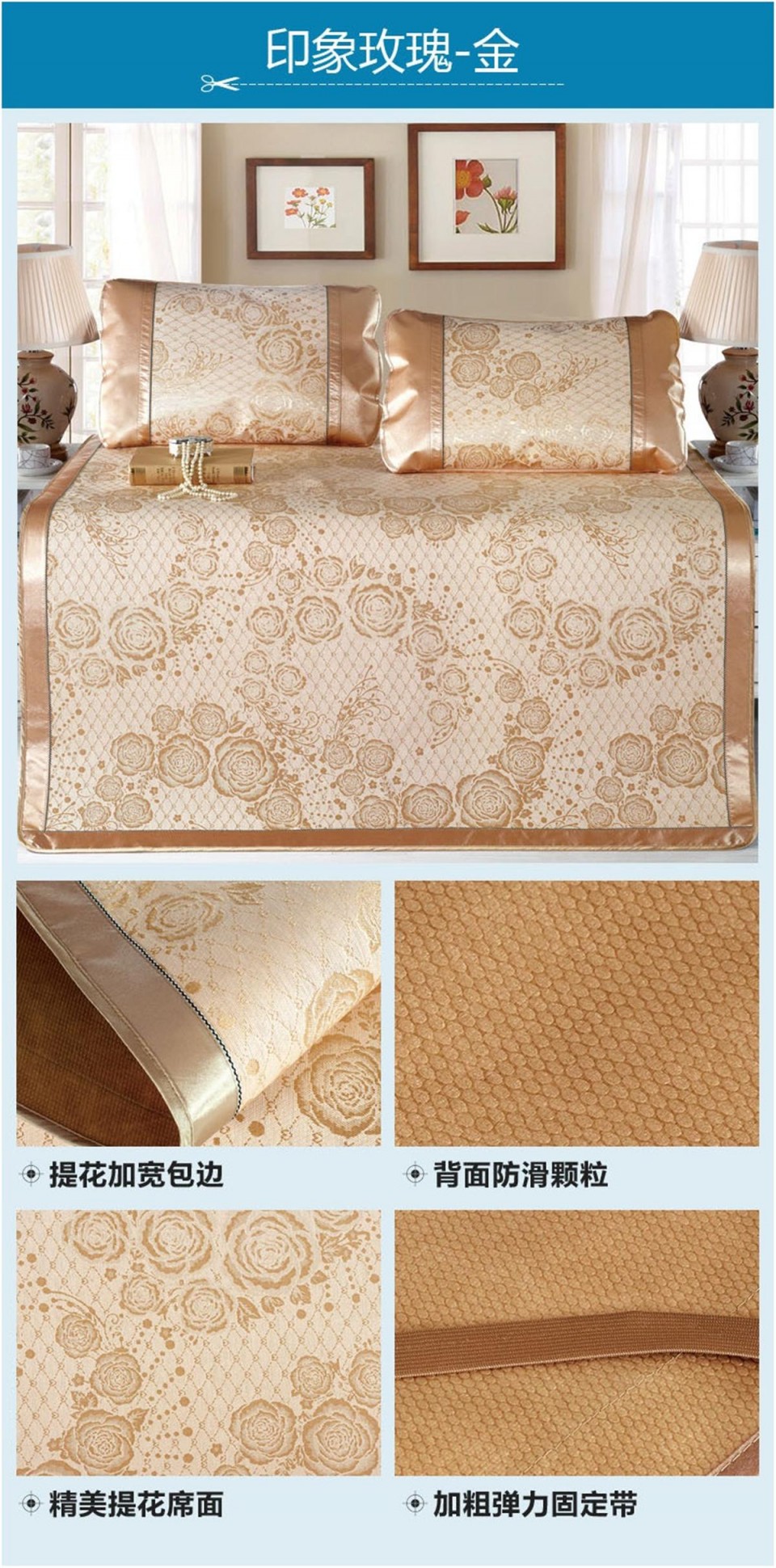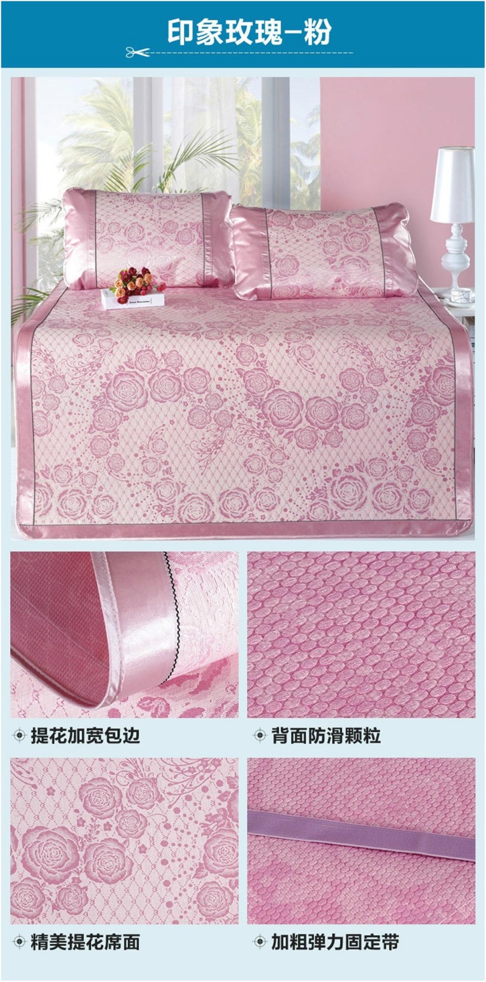 冰丝席印花三件套 双人凉席 印象玫瑰