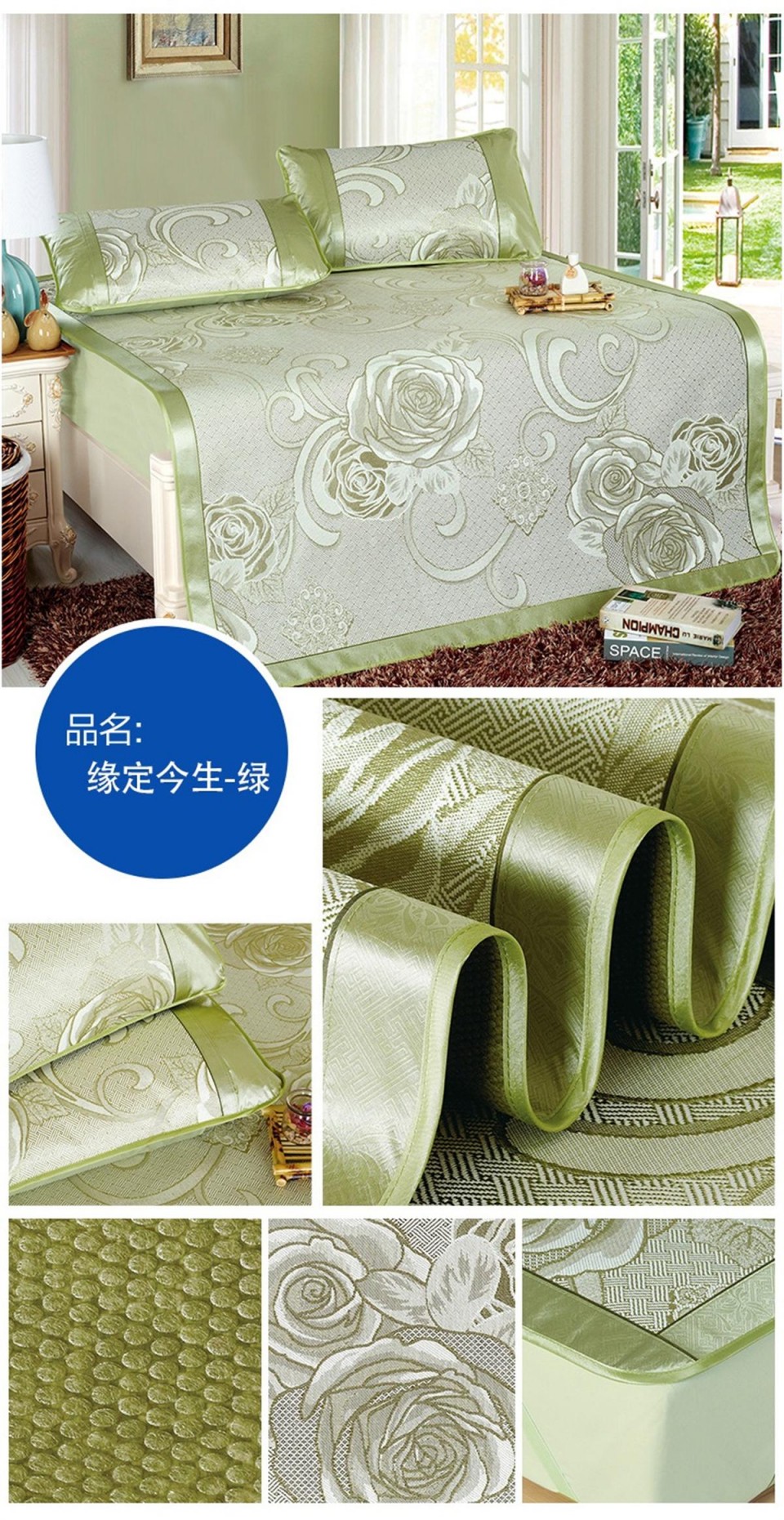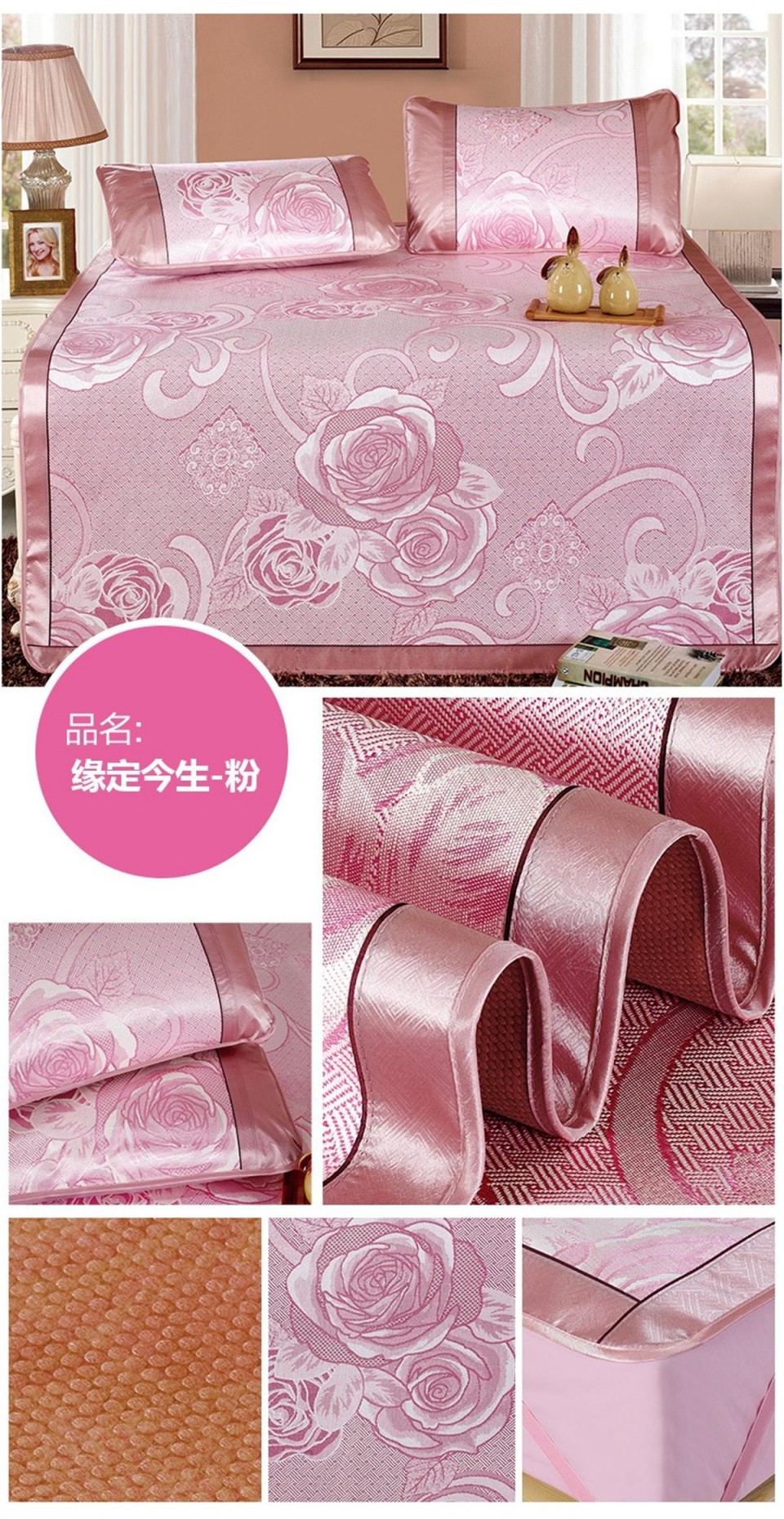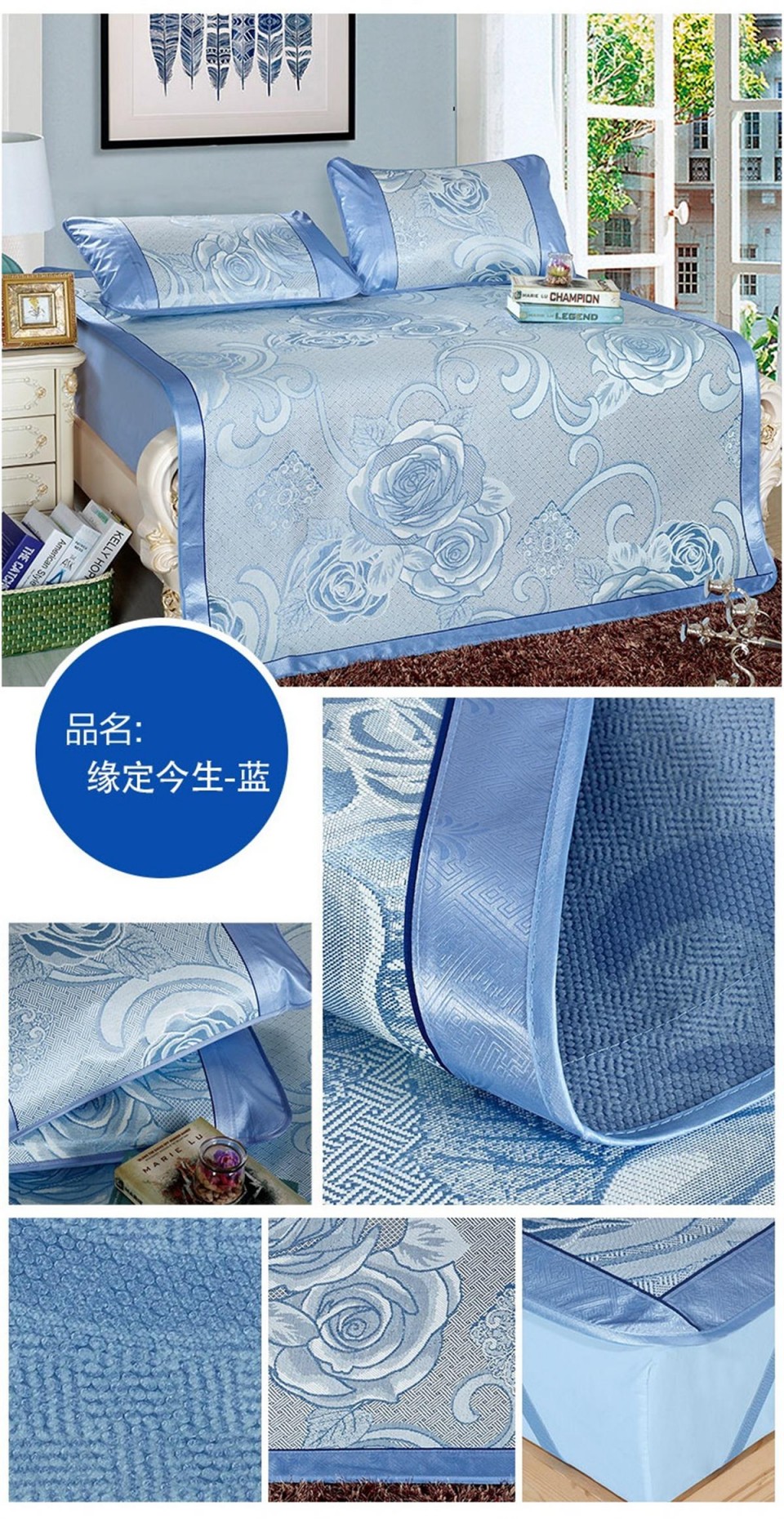 冰丝席印花三件套 双人凉席 缘定今生