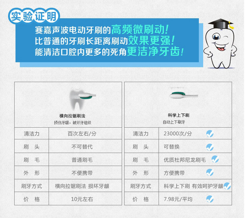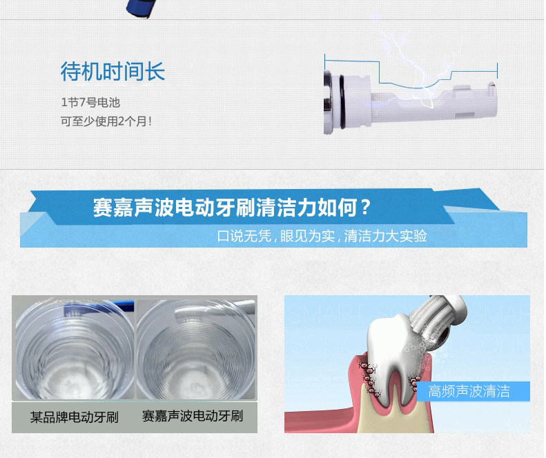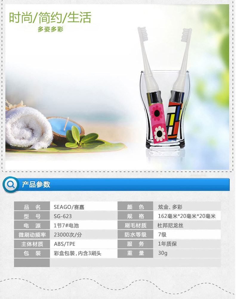 seago/赛嘉成人儿童声波电动牙刷 便携式旅行干电池软毛SG-623