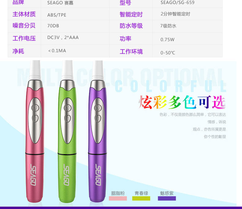 seago/赛嘉智能成人声波电动牙刷SG-659软毛亮白