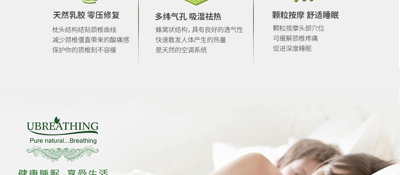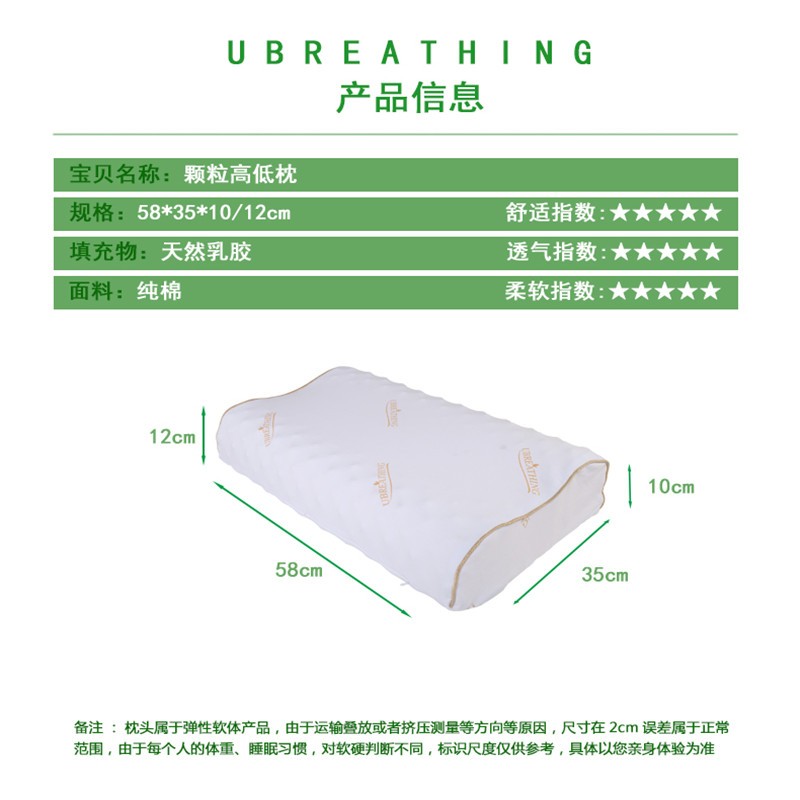 UBREATHING优必思 泰国乳胶枕颗粒高低枕 天然乳胶颈椎按摩高低枕