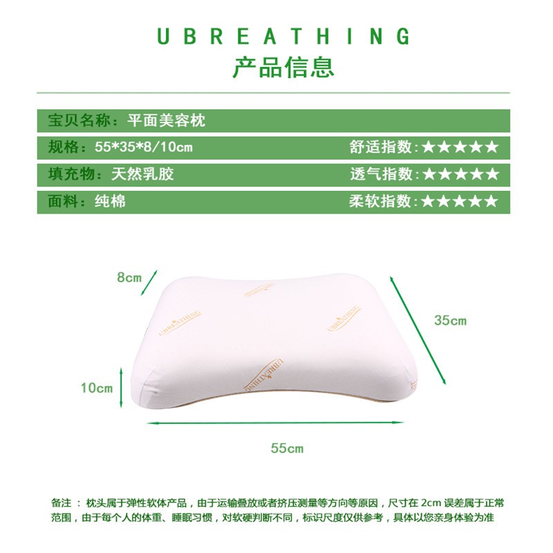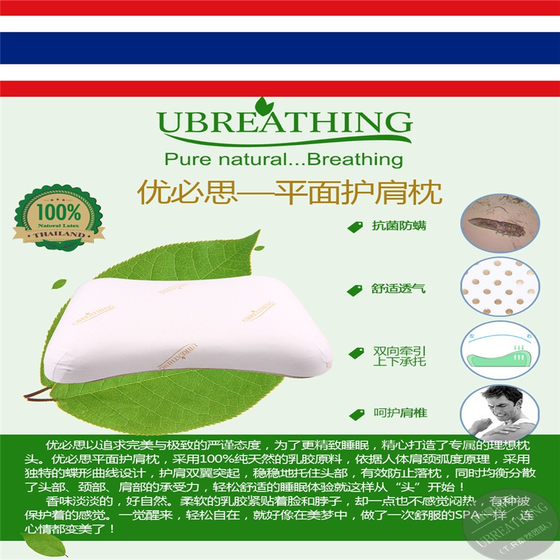 泰国UBREATHING优必思100%纯天然乳胶枕 美容平面颈椎枕护颈枕 平面美容枕