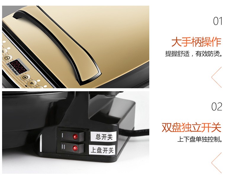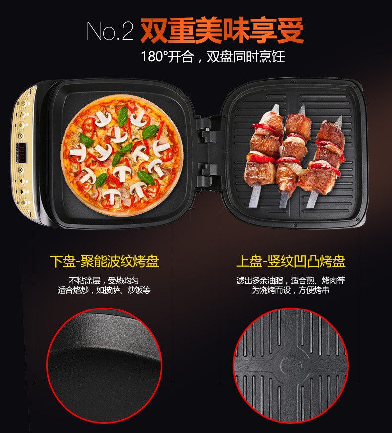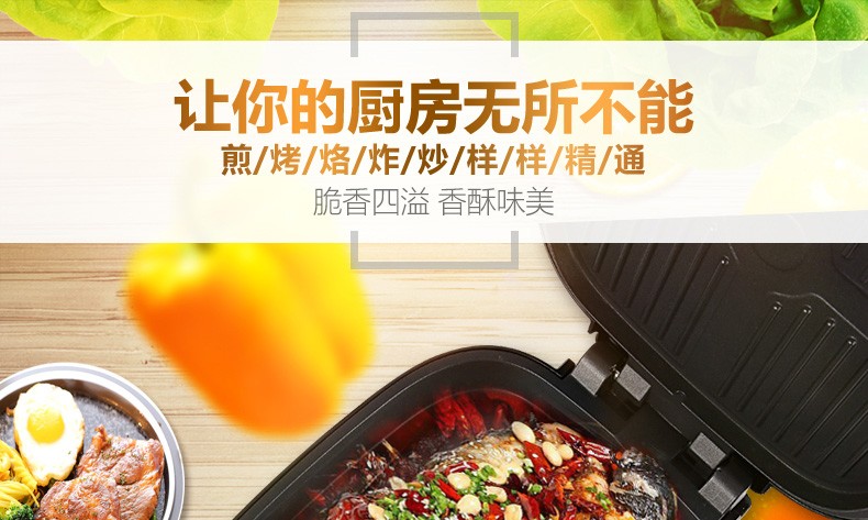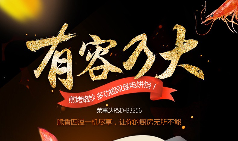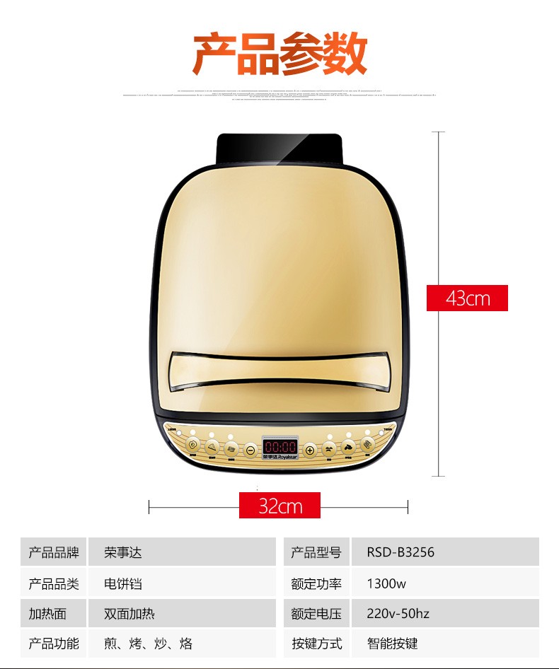 Royalstar/荣事达 RSD-B3256电饼铛双面悬浮式煎烤机方形大容量无烟不粘烙饼