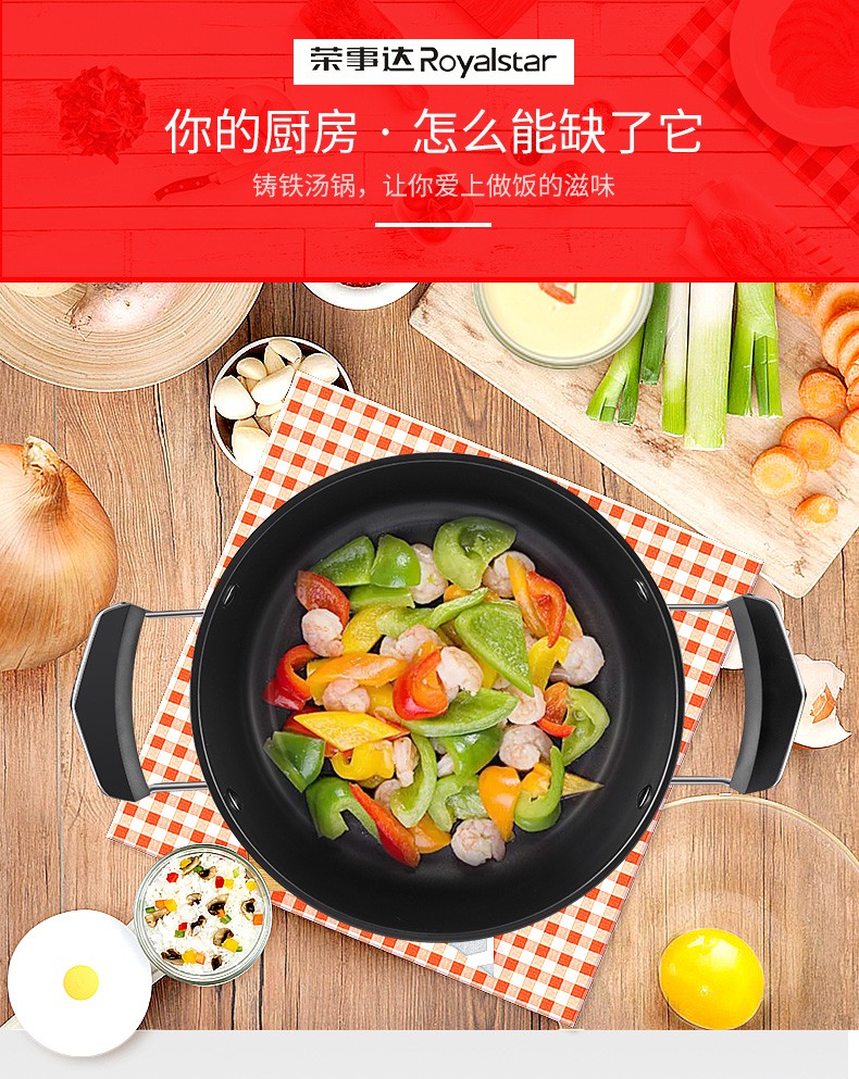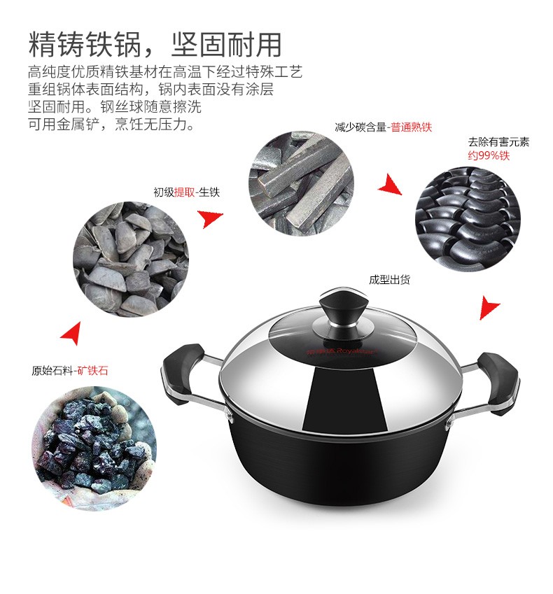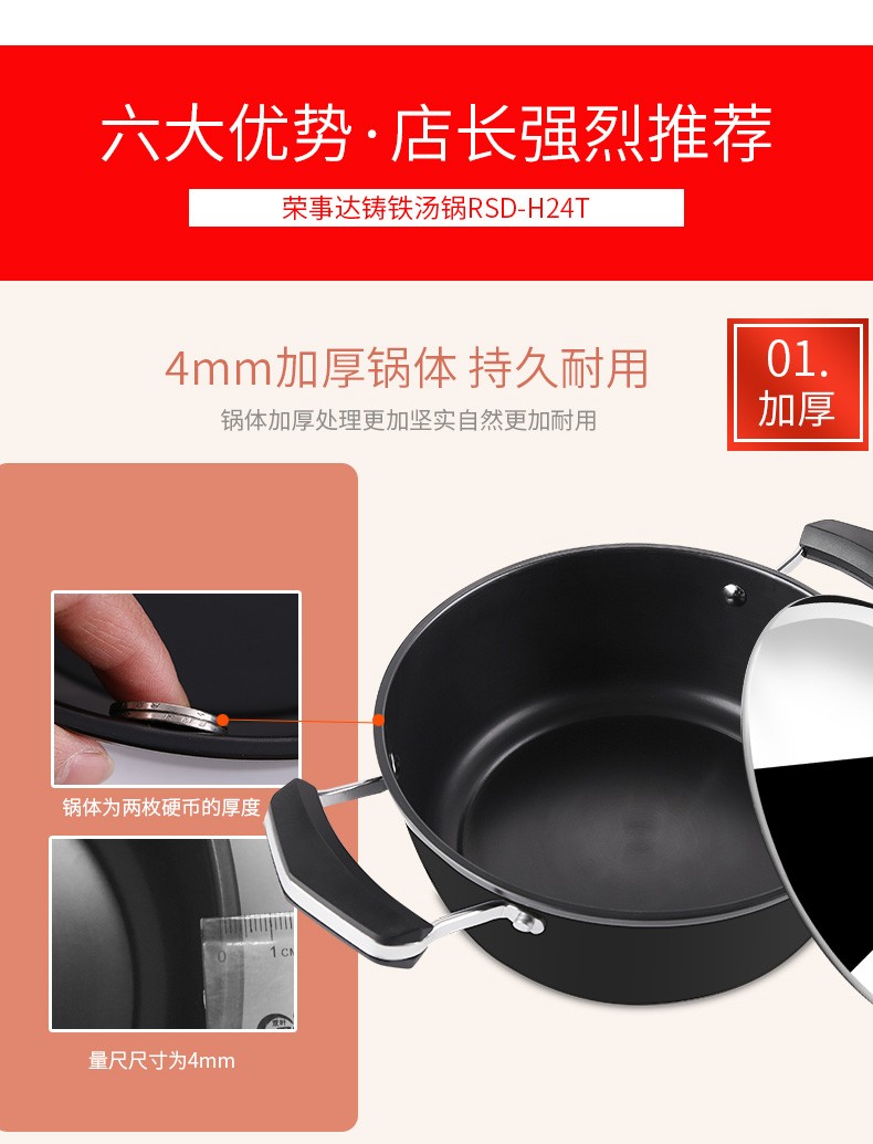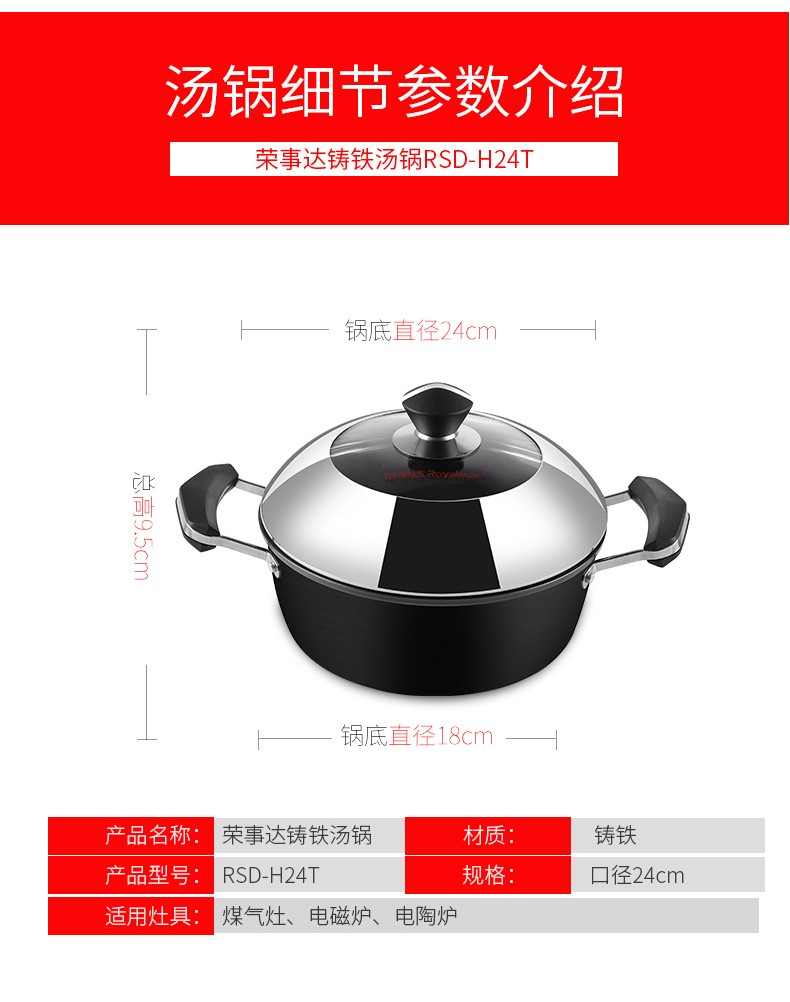 Royalstar/荣事达 铸铁汤锅RSD-H24T健康无涂层 24cm 家用电磁炉电磁炉电陶炉通用