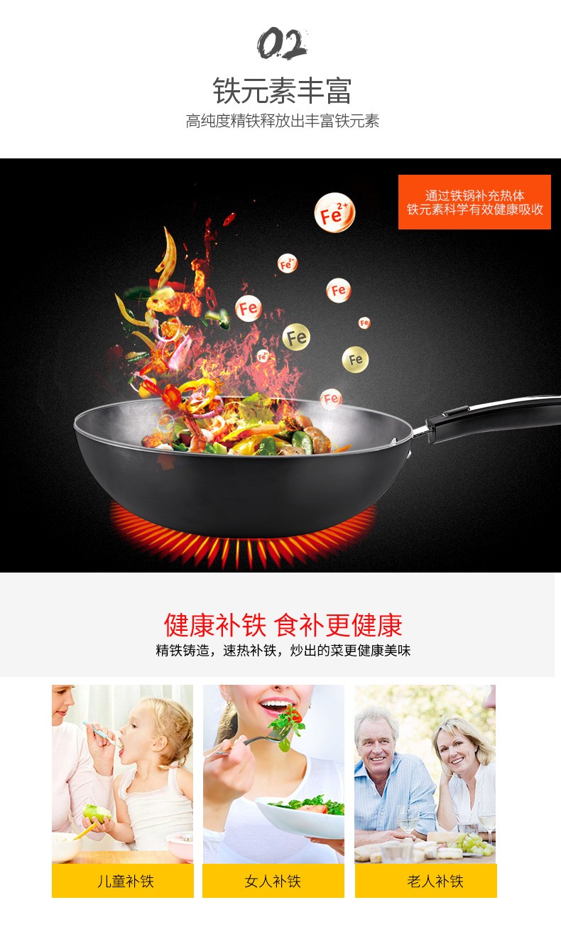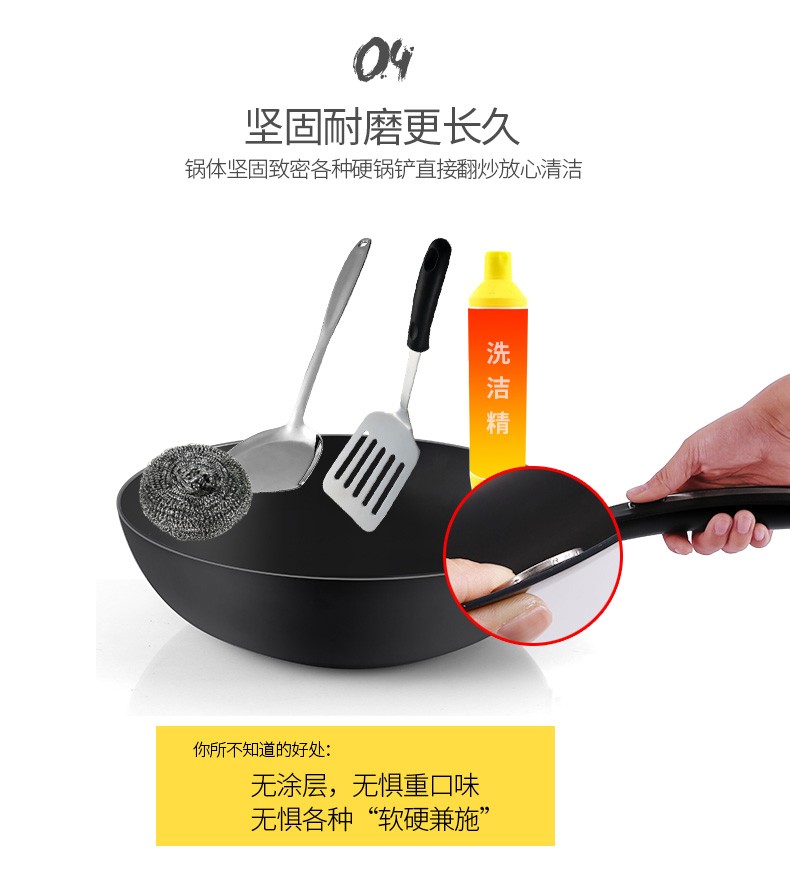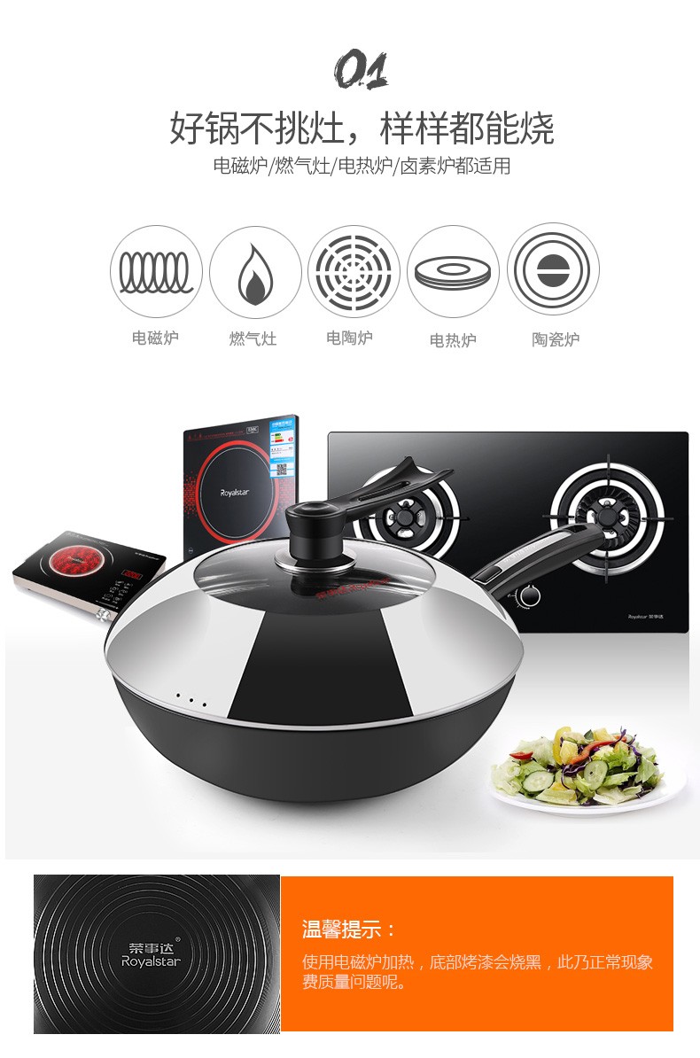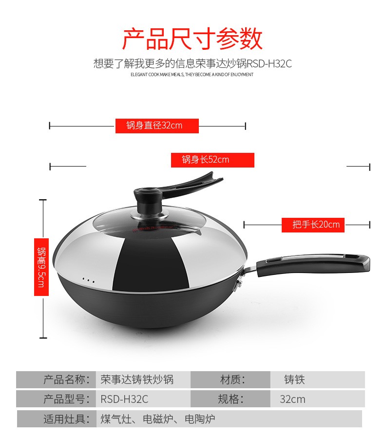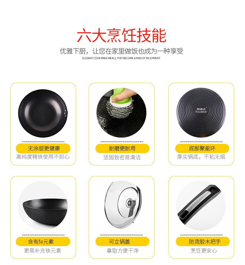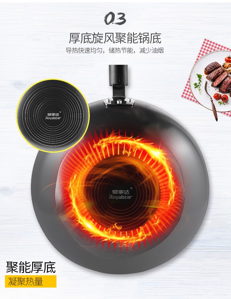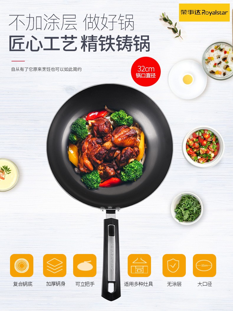 Royalstar/荣事达 精铁炒锅 通用无涂层铸铁锅 家用炒菜锅RSD-H32C