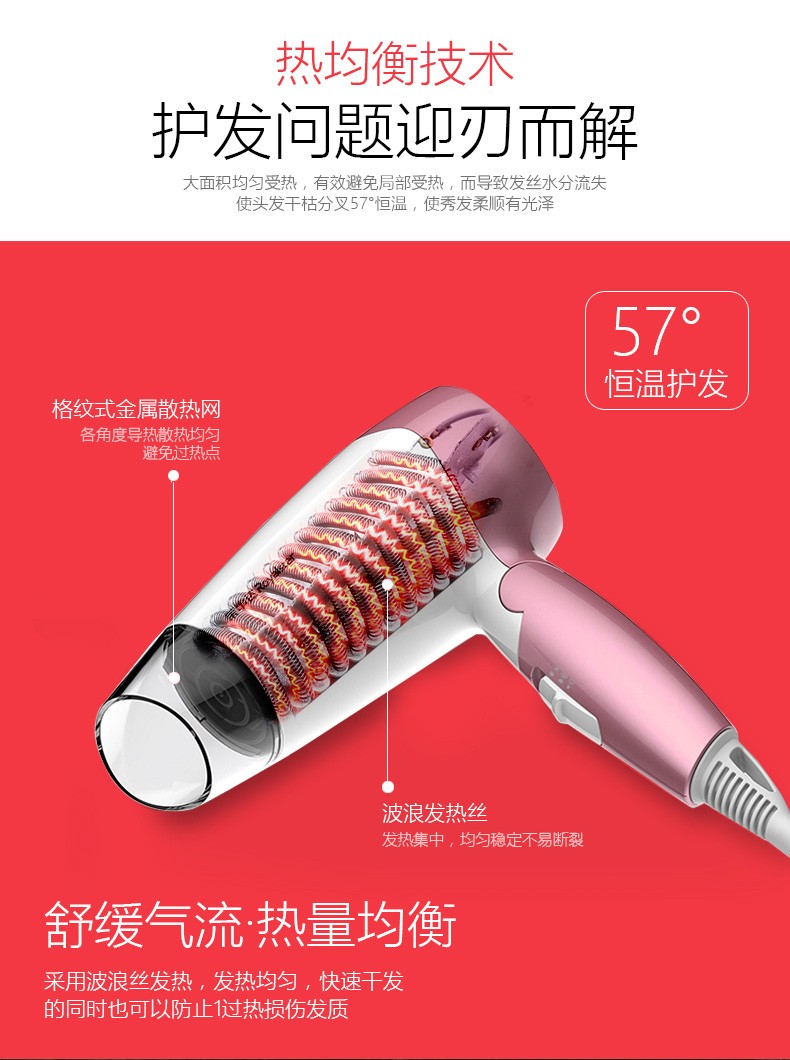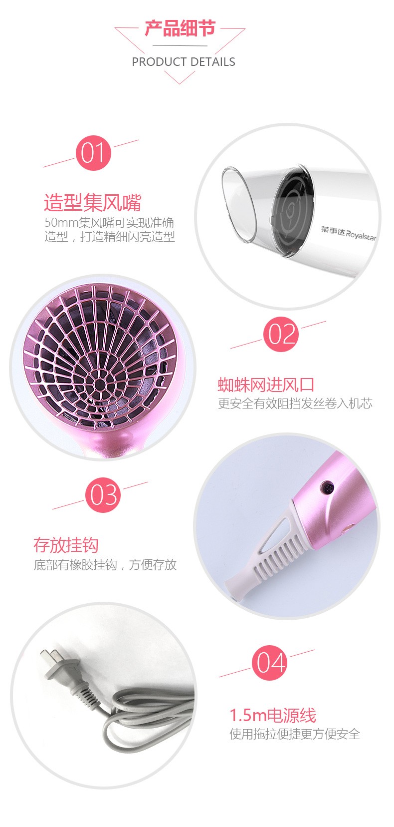 Royalstar/荣事达 家用电吹风可折叠便携吹风机RC-140-A