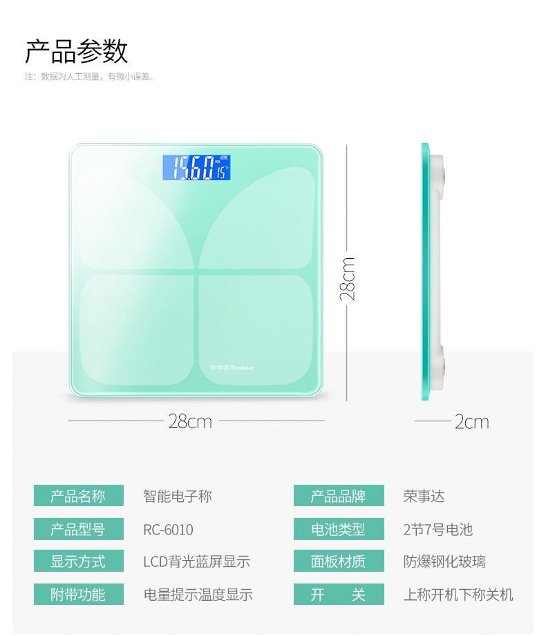 Royalstar/荣事达 电子秤家用智能体重秤精准健康人体秤 成人减肥称重计器RC-6010