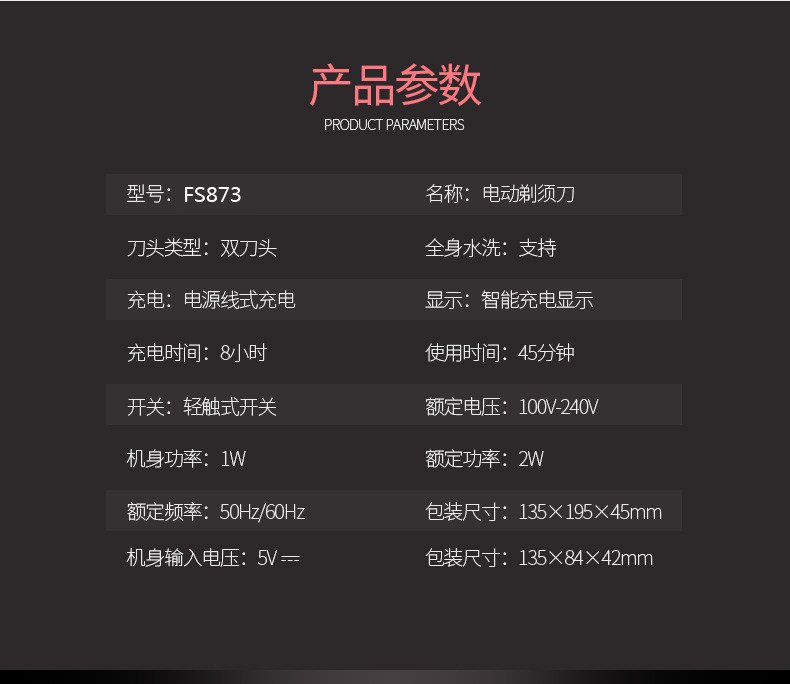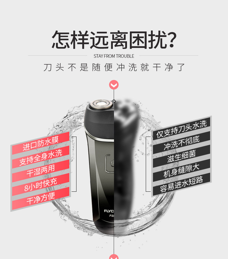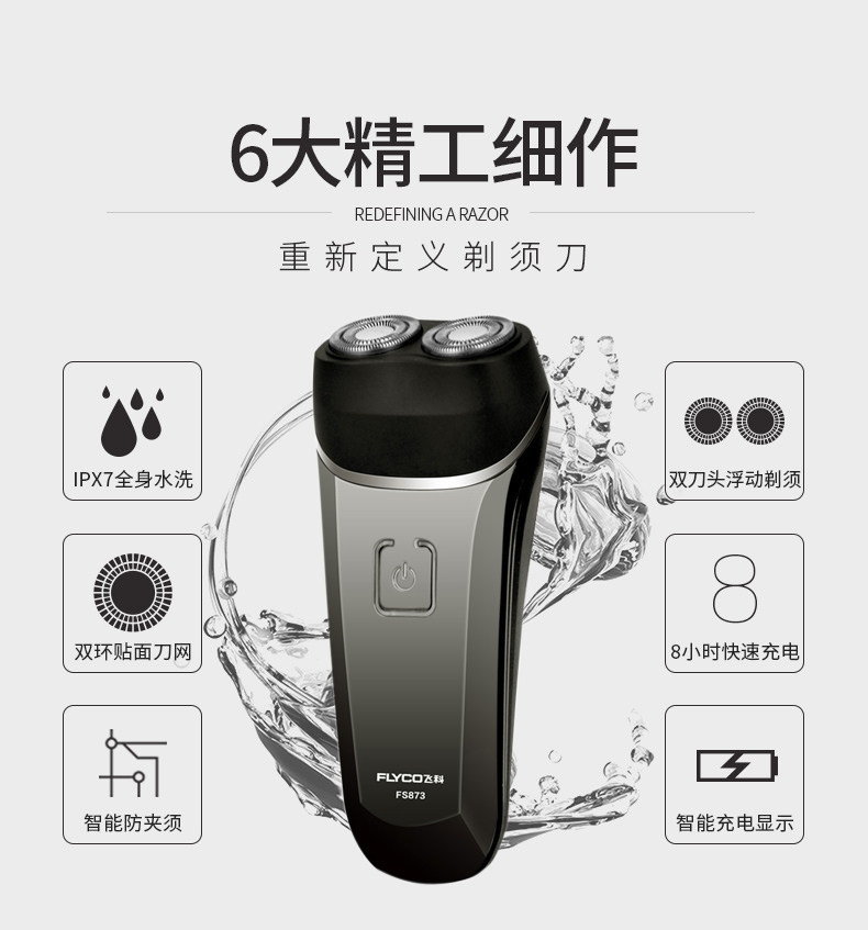 飞科剃须刀全身水洗FS873 刮胡刀电动充电式