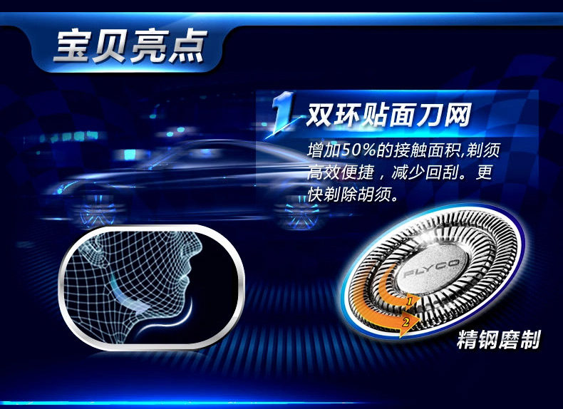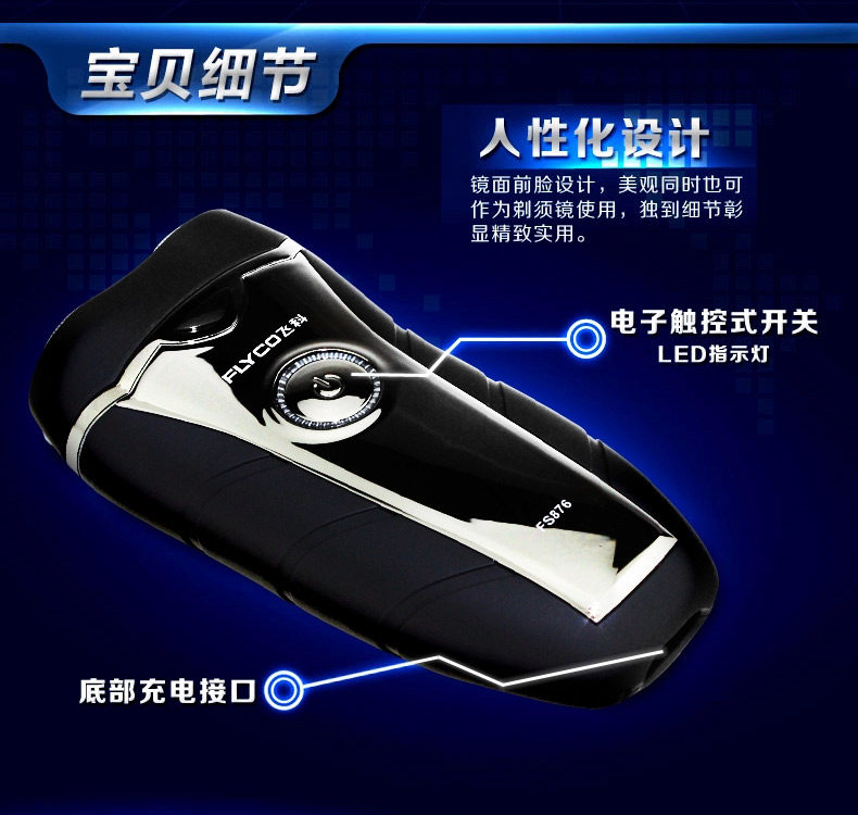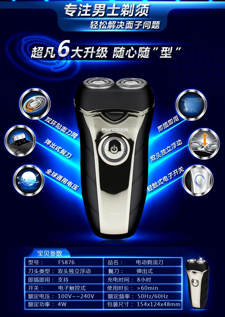 飞科剃须刀智能充电动式双头浮动刮胡须子刀FS876