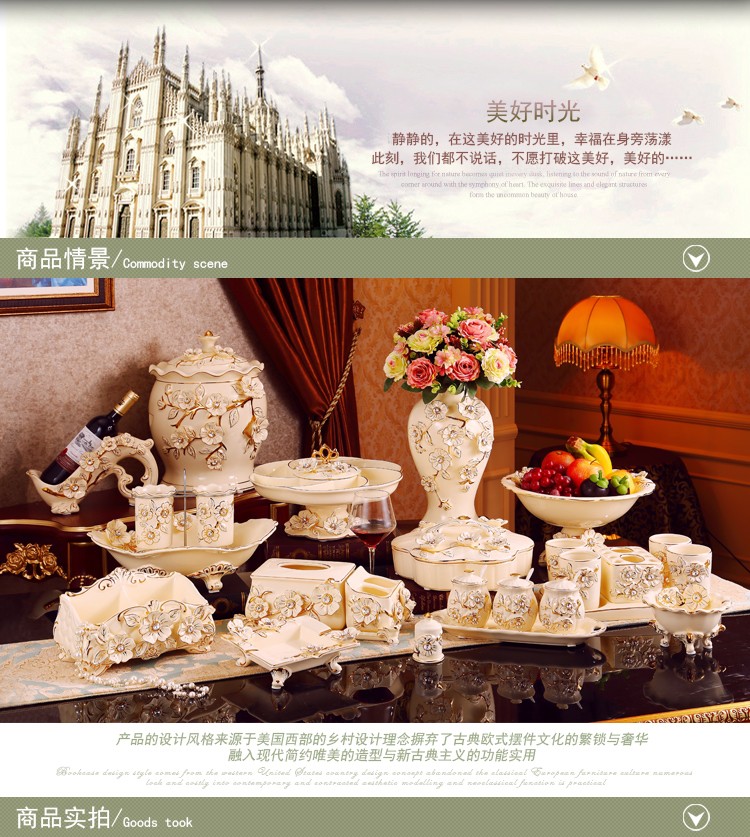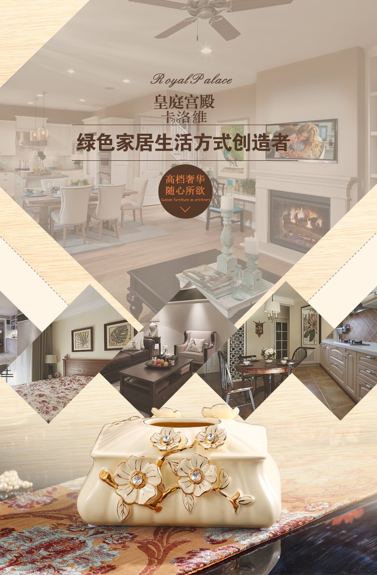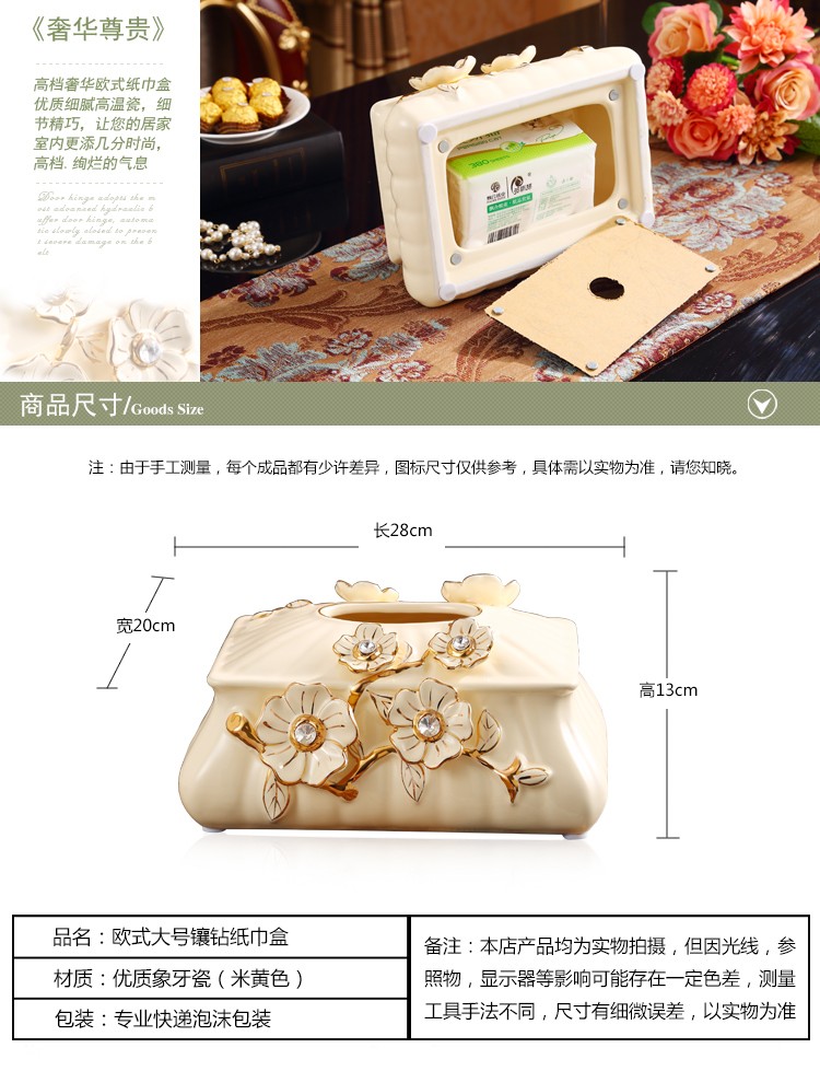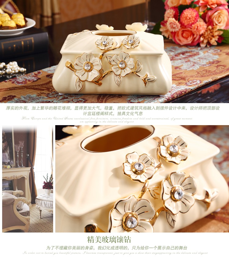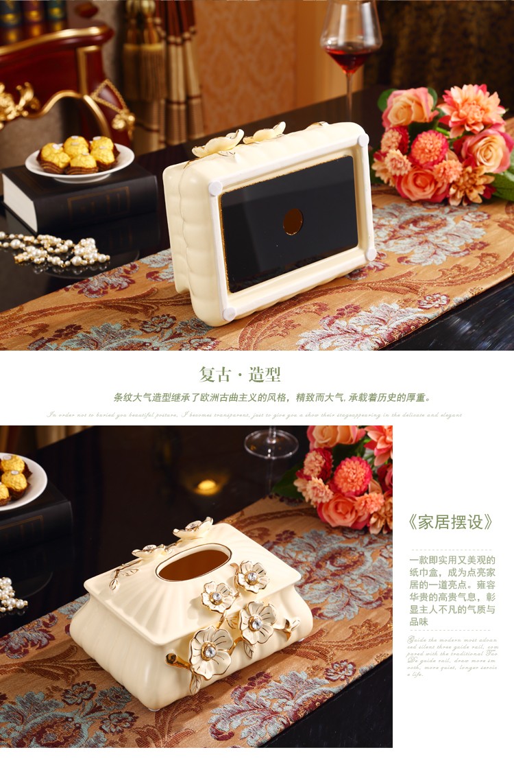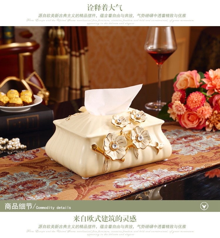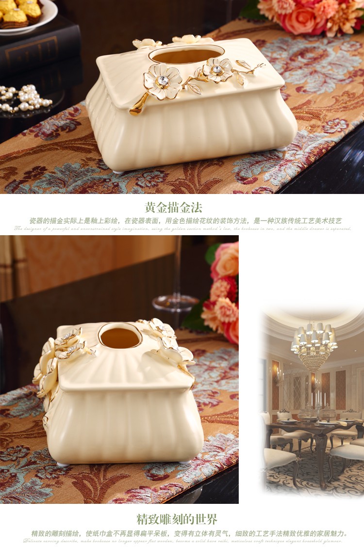 欧式大号陶瓷纸巾盒 长方形高档客厅抽纸盒摆件 家居装饰礼物奢华