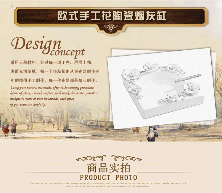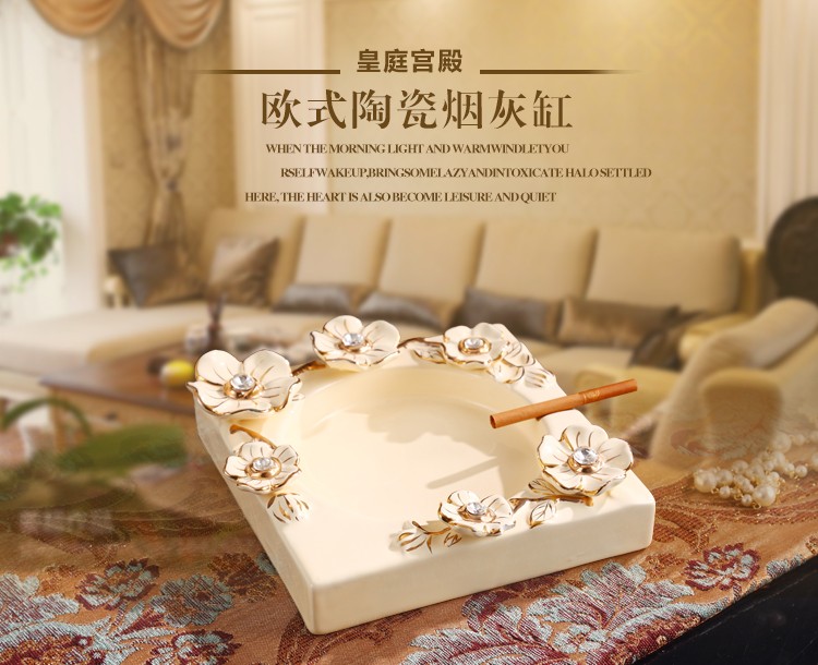 厂家欧式手工描金烟灰缸装饰品陶瓷高档描金餐桌客厅烟缸创意摆件